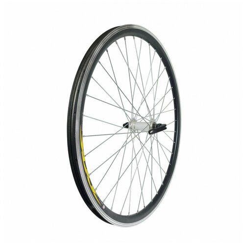 Колесо 28" переднее, обод двойной алюм. б/пист. чёрный, алюм. втулка, с эксцентриком, серебр.