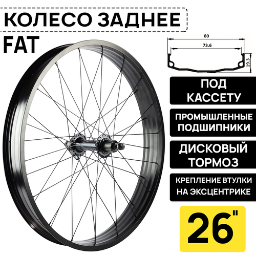 Легкое, прочное колесо для велосипеда типа FAT BIKE с диаметром 26". Отлично подходит для передвижения как по асфальтовому, так и по грунтовому покрытию. Колесо позволяет использовать его с дисковыми тормозами и ободными в том числе, прочные 2мм спицы позволят не думать о восьмерках. Колесо крепится к велосипеду 10мм осью на эксцентрике.