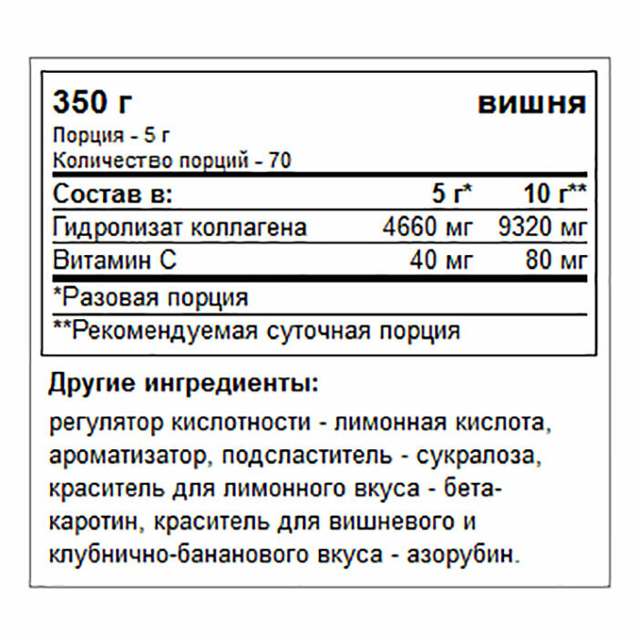 - Подкреплен витаминами: Добавление витамина С не только стимулирует синтез коллагена, но и укрепляет иммунитет.