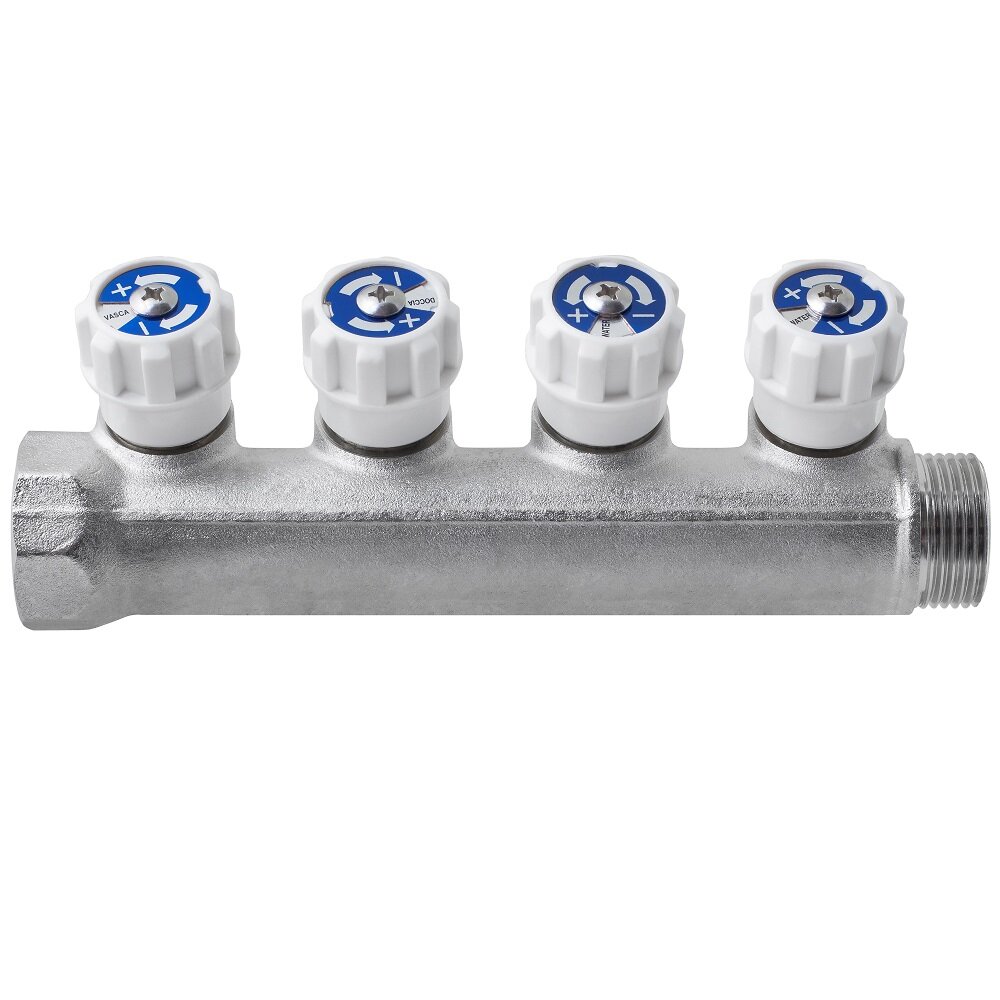 Купить Коллектор 3/4″ в/н с регулирующими вентилями на 4 выхода 1/2″ н, под евроконус MPF с доставкой по всей России.