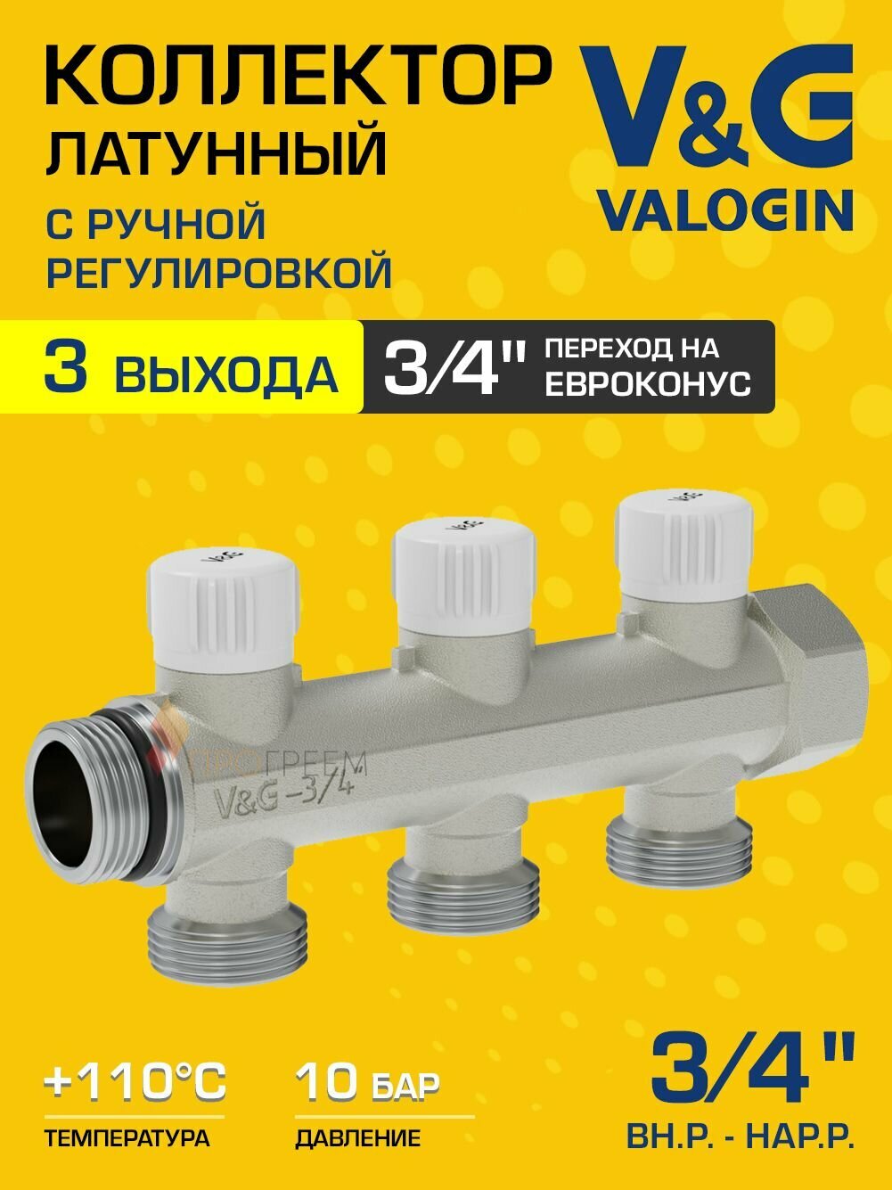 Купить Коллектор 3/4″ x 3 выхода 3/4″ Евроконус с ручной регулировкой V&G VALOGIN / Распределительная гребенка латунная на 3 контура для системы отопления, горячей и холодной воды, VG-901502 с доставкой по всей России. Коллектор 3/4″ x 3 выхода 3/4″ Евроконус с ручной регулировкой V&G VALOGIN / Распределительная гребенка латунная на 3 контура для системы отопления, горячей и холодной воды, VG-901502: сравнение цен, характеристики, фото, актуальное наличие и цены.