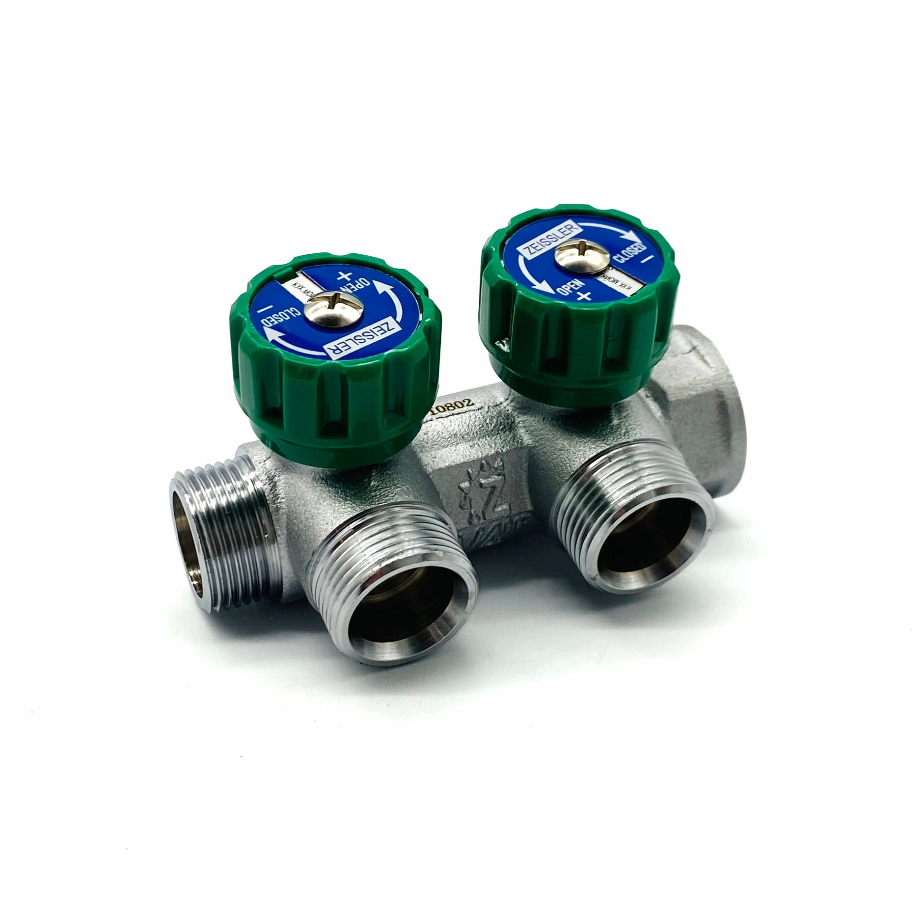 Коллектор c регулирующими вентилями 3/4″ / 2 выхода 3/4″ под евроконус ZEISSLER арт. ZSC.401.0502NE: сравнение цен, характеристики, фото, актуальное наличие и цены.