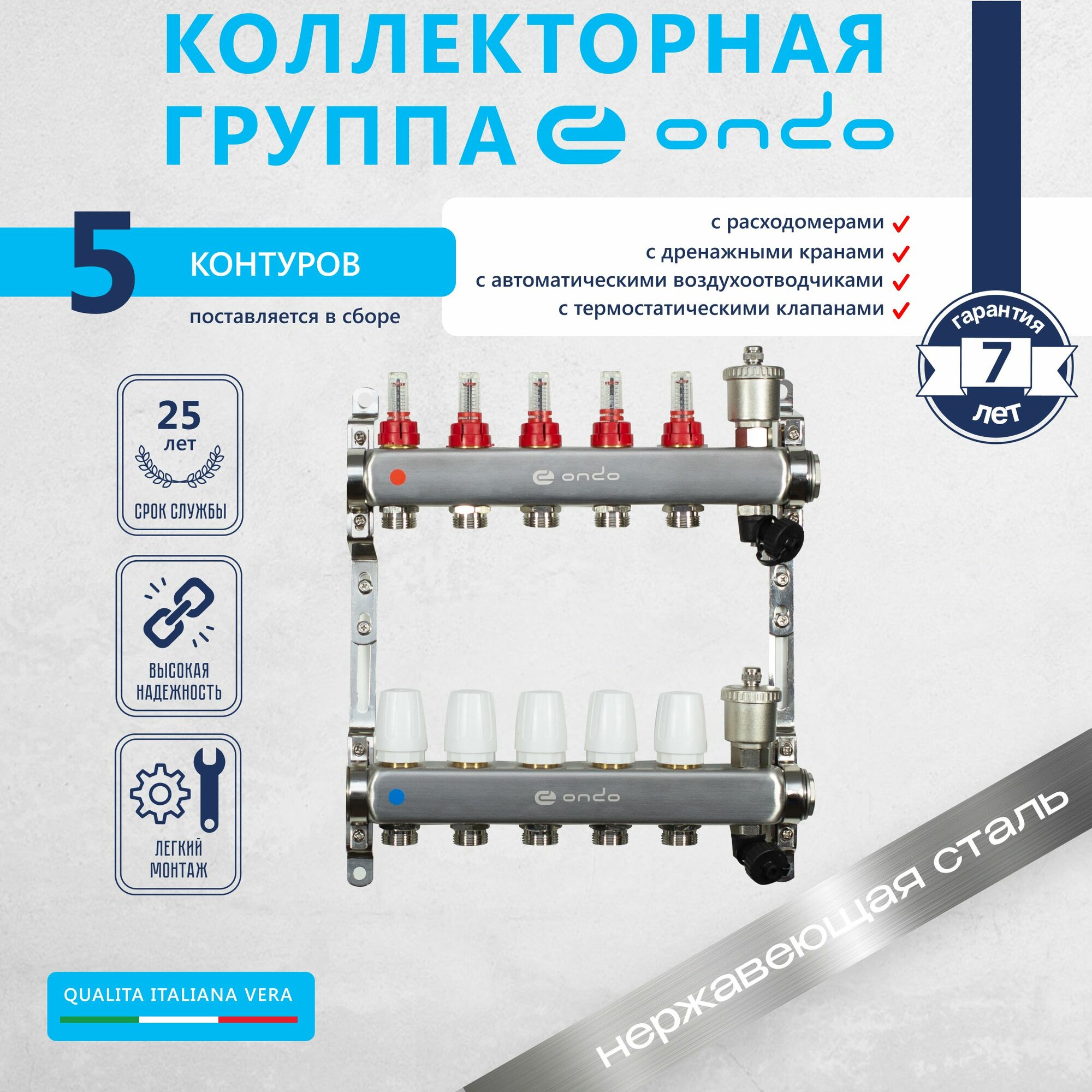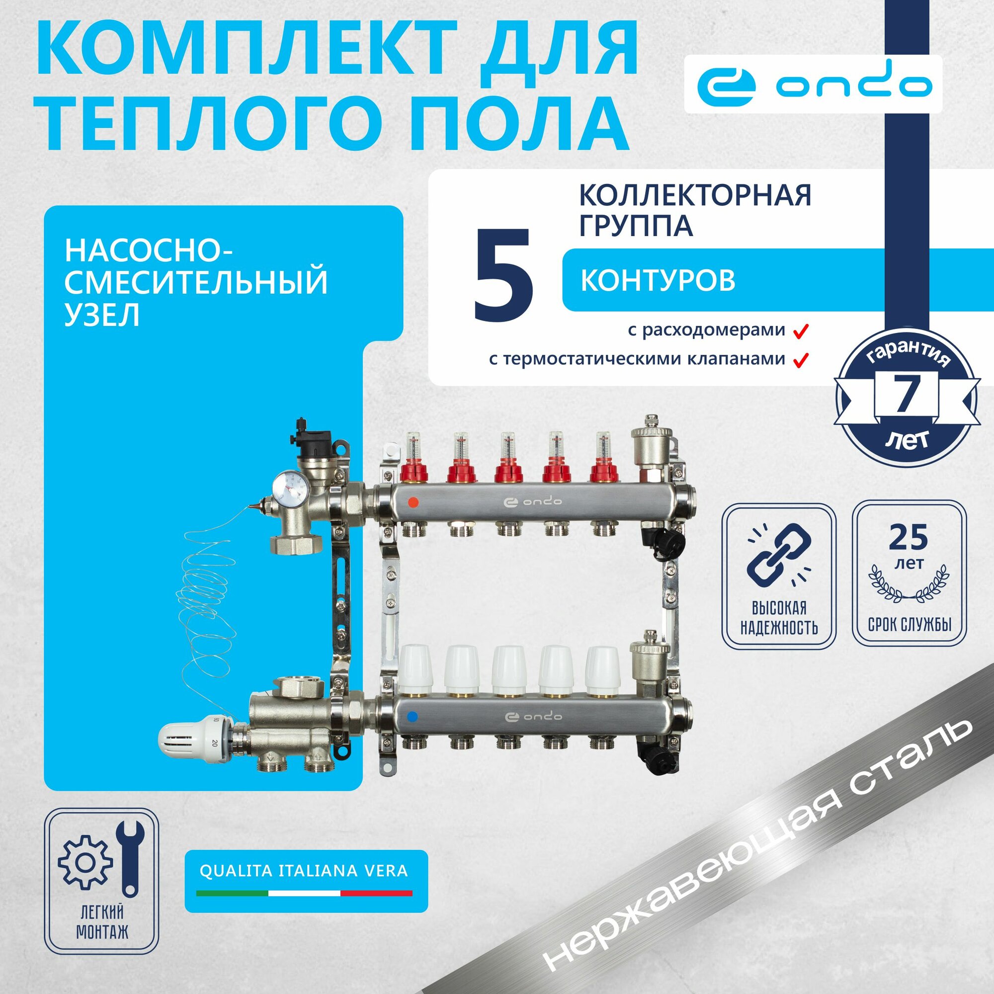 Коллектор для теплого пола на 5 выходов + термостатические клапаны + расходомеры + воздухоотводчик + смесительный узел ONDO: сравнение цен, характеристики, фото, актуальное наличие и цены.