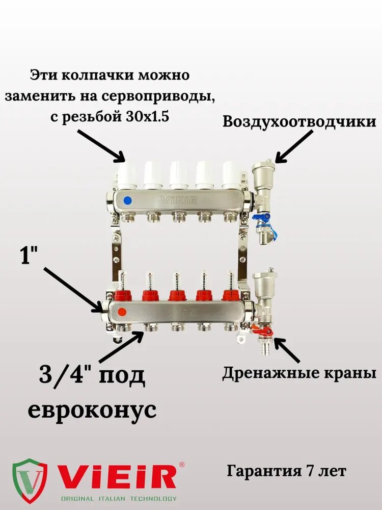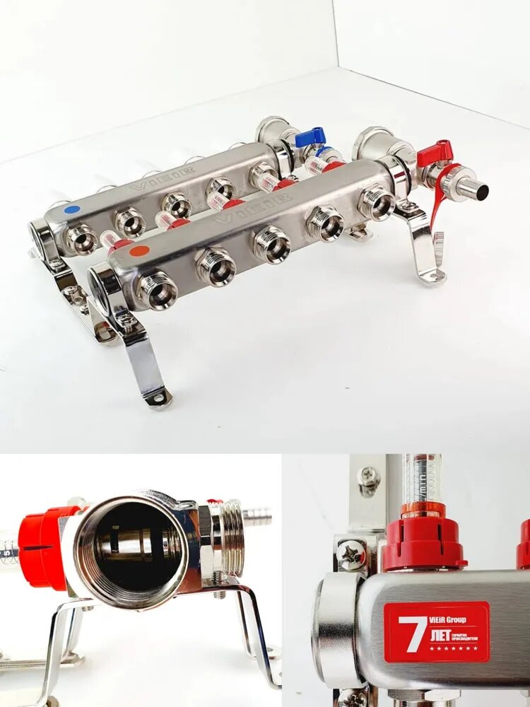 Коллектор для теплого пола 8 контуров в сборе распеределительный с расходометрами 1″x3/4″ VIEIR: сравнение цен, характеристики, фото, актуальное наличие и цены.