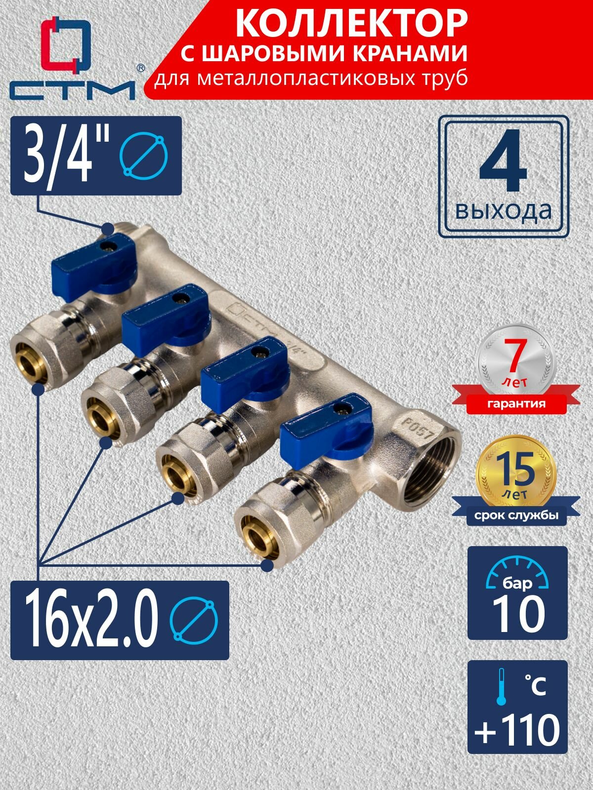 Коллектор для теплого пола и водоснабжения 3/4″ с шаровыми кранами 4 выхода для металлопластиковых труб 16: сравнение цен, характеристики, фото, актуальное наличие и цены.
