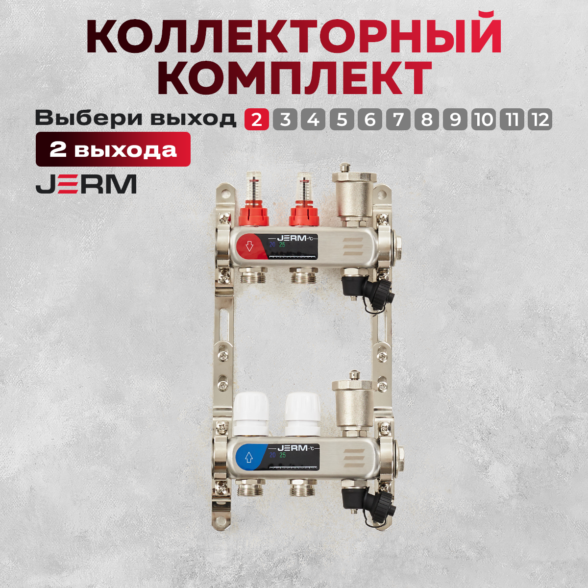 Коллектор для теплого пола JERM JKS02 Коллектор с расходомерами на 2 контура. До 40кв/м.: сравнение цен, характеристики, фото, актуальное наличие и цены.