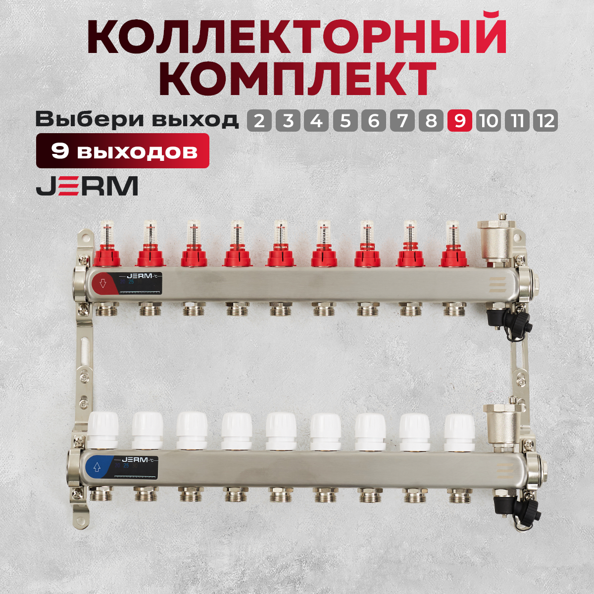 Коллектор для теплого пола JERM JKS09 Коллектор с расходомерами на 9 контуров. До 110кв/м.: сравнение цен, характеристики, фото, актуальное наличие и цены.