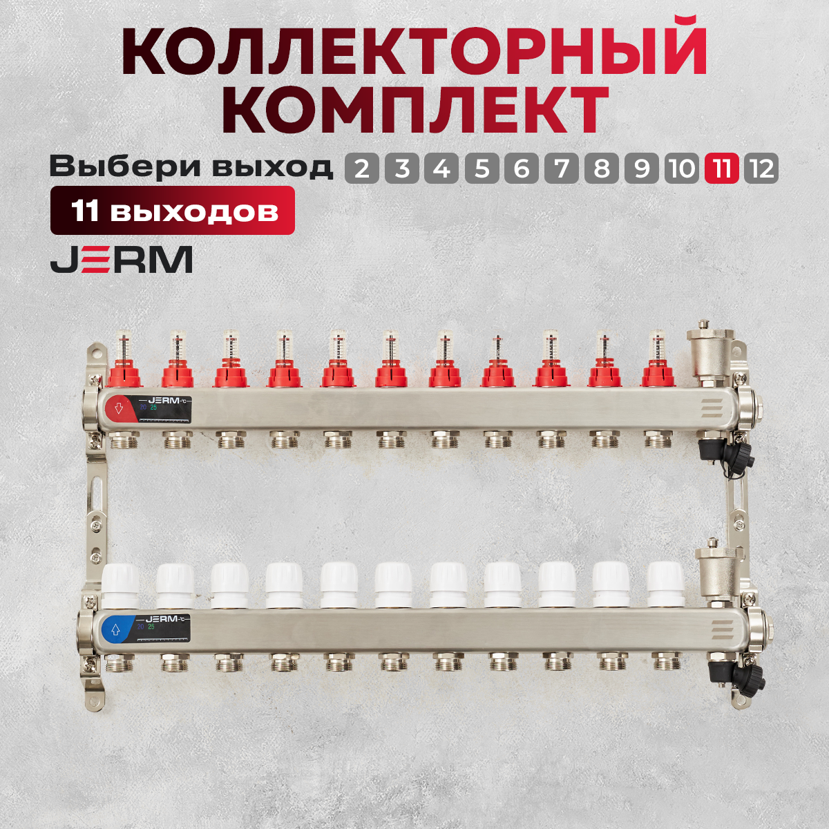 Коллектор для теплого пола JERM JKS11 Коллектор с расходомерами на 11 контуров. До 130кв/м.: сравнение цен, характеристики, фото, актуальное наличие и цены.