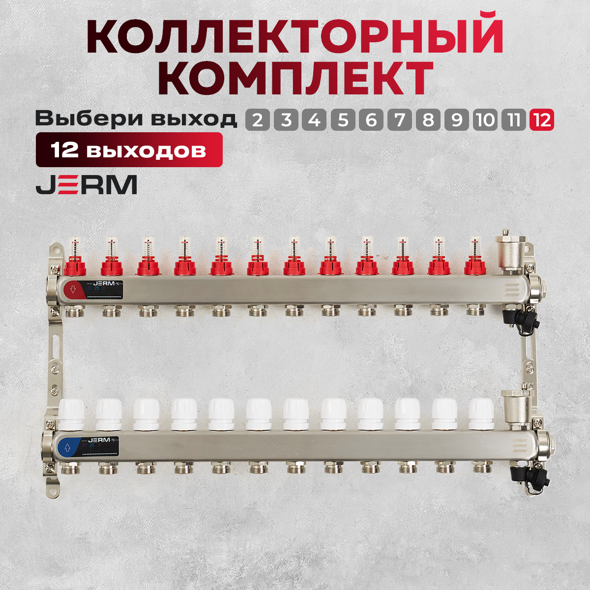 Коллектор для теплого пола JERM JKS12 Коллектор с расходомерами на 12 контуров. До 140кв/м.: сравнение цен, характеристики, фото, актуальное наличие и цены.