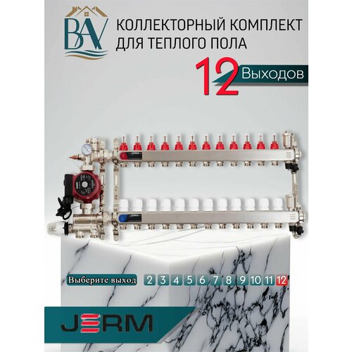 Коллектор для теплого пола JERM Коллектор с расходомерами на 12 контура. Смесительный узел от 20-60С. Циркуляционный насос 25/60. До 140кв/м.: сравнение цен, характеристики, фото, актуальное наличие и цены.