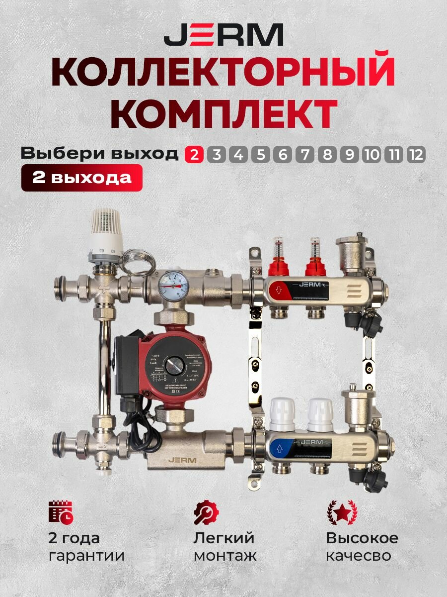 Коллектор для теплого пола JERM Коллектор с расходомерами на 2 контура. Смесительный узел JERM JR-007039. Циркуляционный насос 25/60. До 40кв/м.: сравнение цен, характеристики, фото, актуальное наличие и цены.