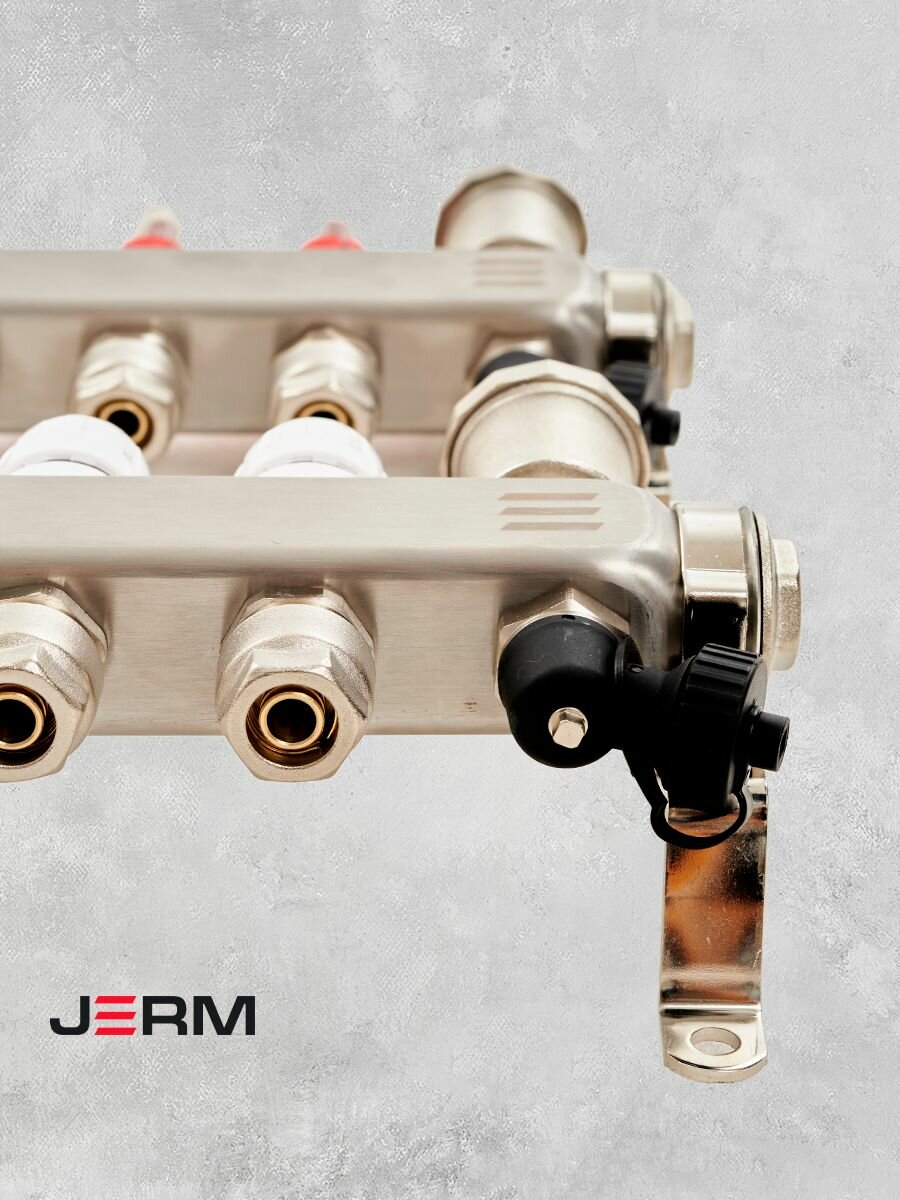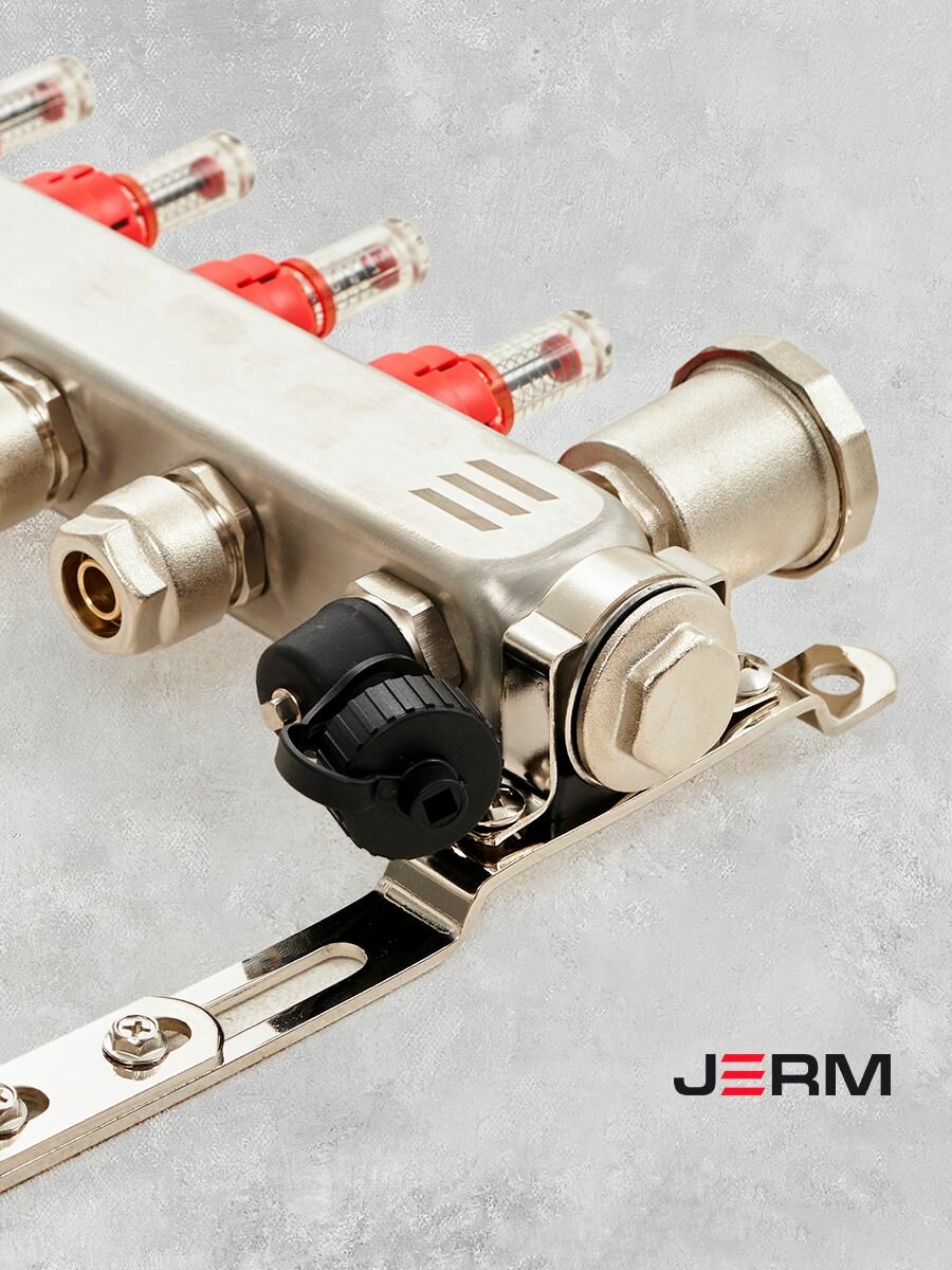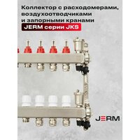 Купить Коллектор для теплого пола JERM Коллектор с расходомерами на 4 контура. Евроконусы(Гайки) 16х2,0х3/4. До 70кв/м. с доставкой по всей России.