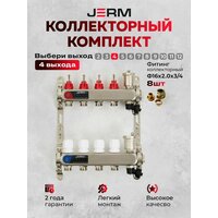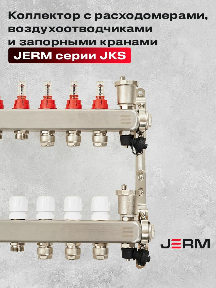 Коллектор для теплого пола JERM Коллектор с расходомерами на 4 контура. Евроконусы(Гайки) 16х2,0х3/4. До 70кв/м.: сравнение цен, характеристики, фото, актуальное наличие и цены.