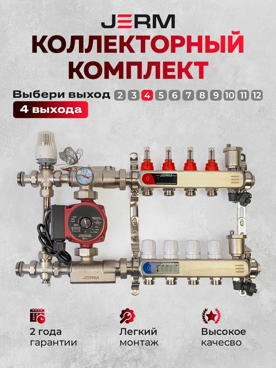 Коллектор для теплого пола JERM Коллектор с расходомерами на 4 контура. Смесительный узел JR-007039. Циркуляционный насос 25/60. До 60кв/м.: сравнение цен, характеристики, фото, актуальное наличие и цены.