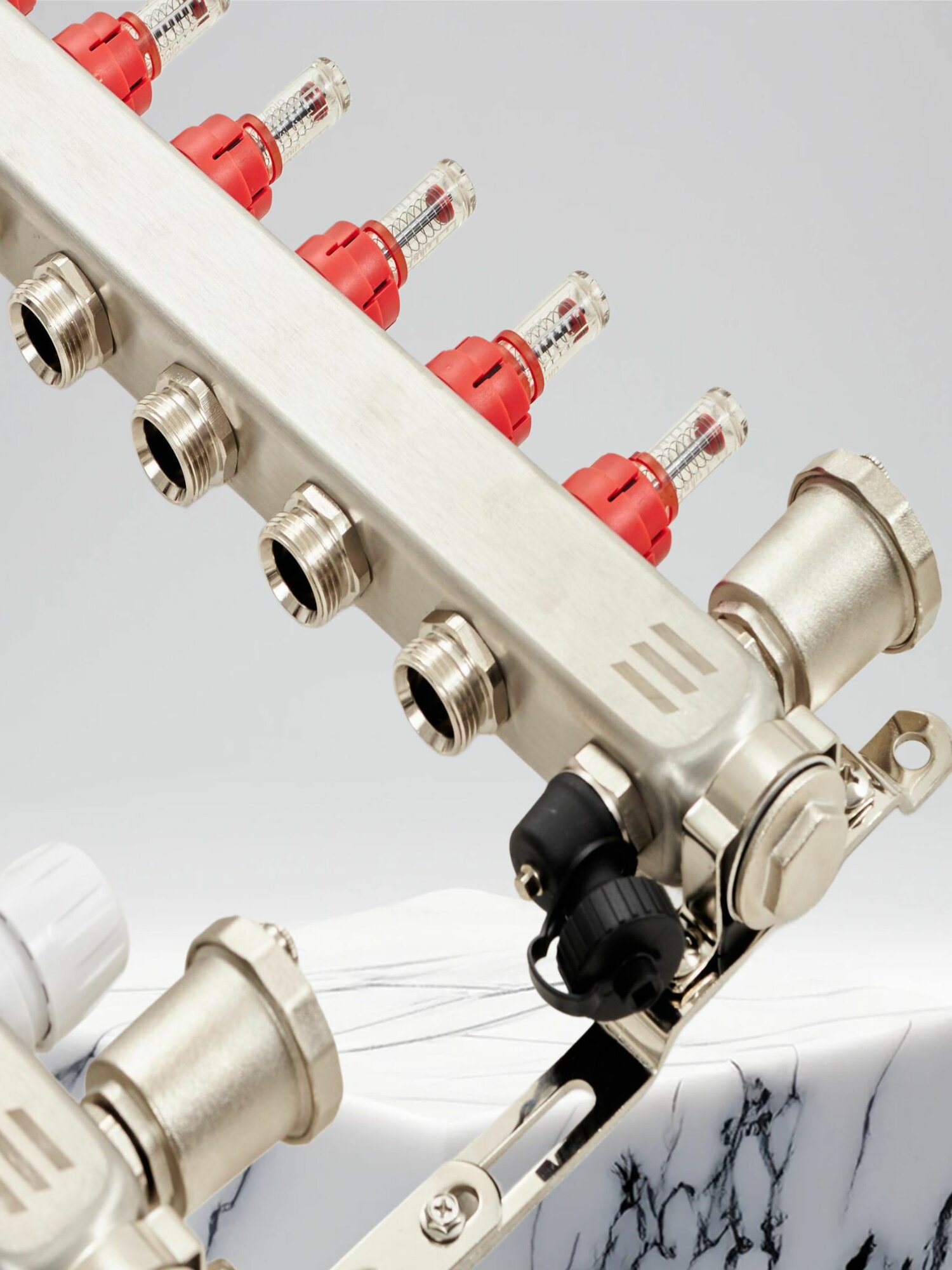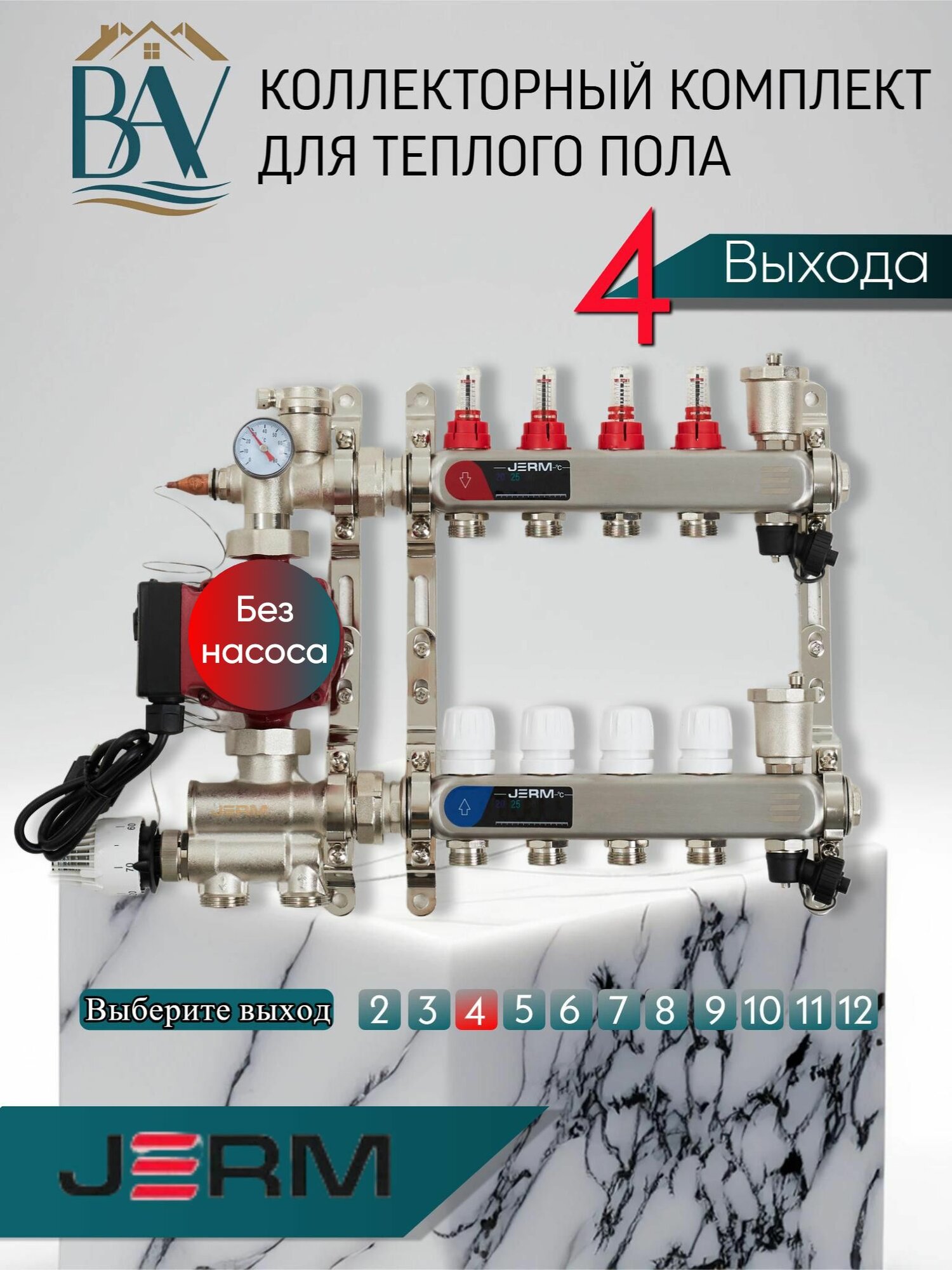 Коллектор для теплого пола JERM Коллектор с расходомерами на 4 контура. Смесительный узел от 20-60С. До 60кв/м.: сравнение цен, характеристики, фото, актуальное наличие и цены.
