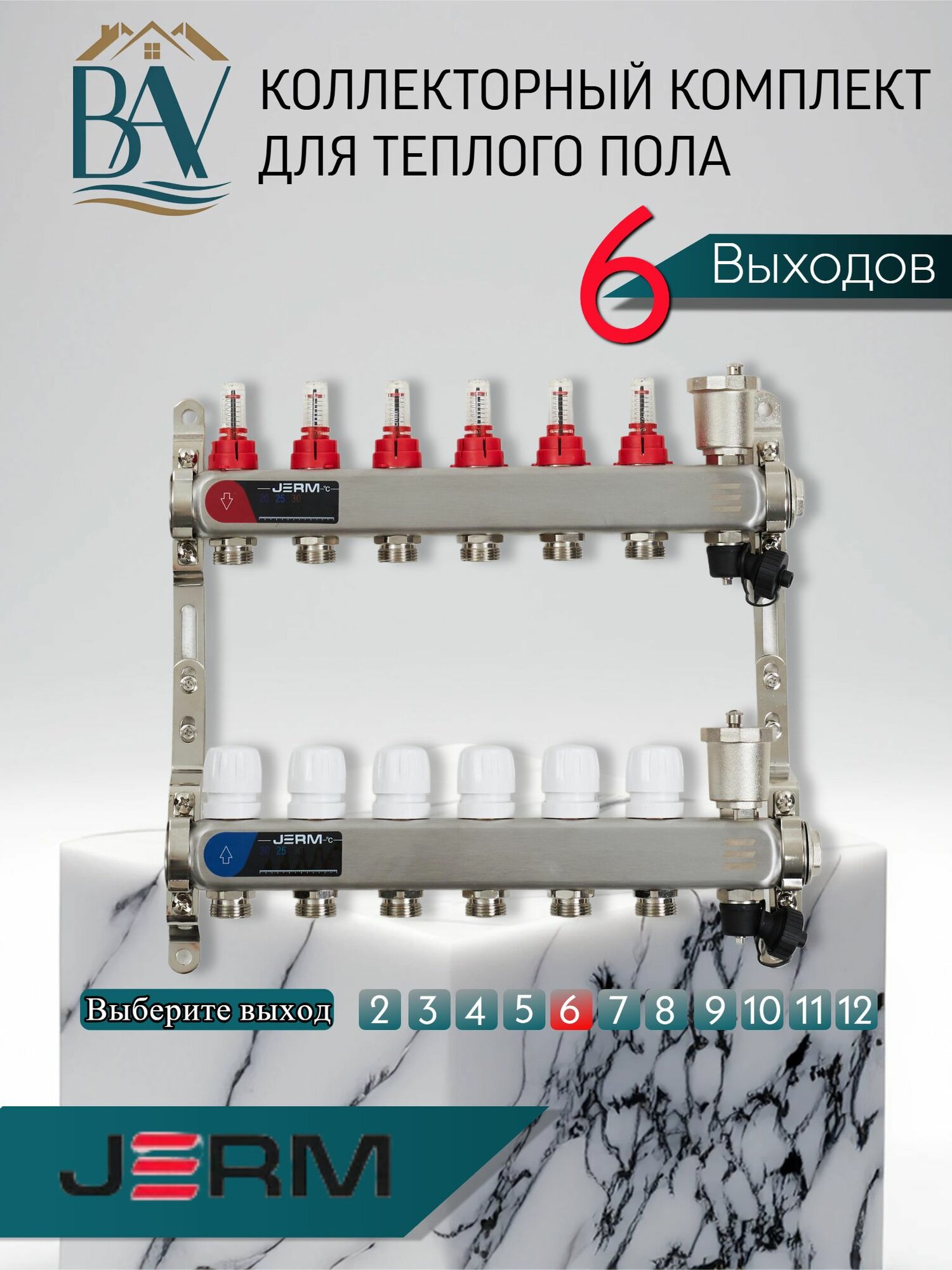 Коллектор для теплого пола JERM Коллектор с расходомерами на 6 контура. До 80кв/м.: сравнение цен, характеристики, фото, актуальное наличие и цены.