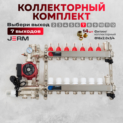 Коллектор для теплого пола JERM Коллектор с расходомерами на 7 контуров. Смесительный узел от 20-60С. Циркуляционный насос 25/60. Евроконусы(Гайки) 16х2,0х3/4. До 90кв/м.: сравнение цен, характеристики, фото, актуальное наличие и цены.