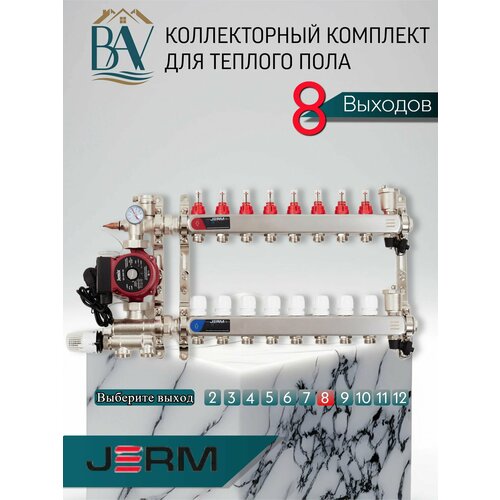 Коллектор для теплого пола JERM Коллектор с расходомерами на 8 контура. Смесительный узел от 20-60С. Циркуляционный насос 25/60. До 100кв/м.: сравнение цен, характеристики, фото, актуальное наличие и цены.