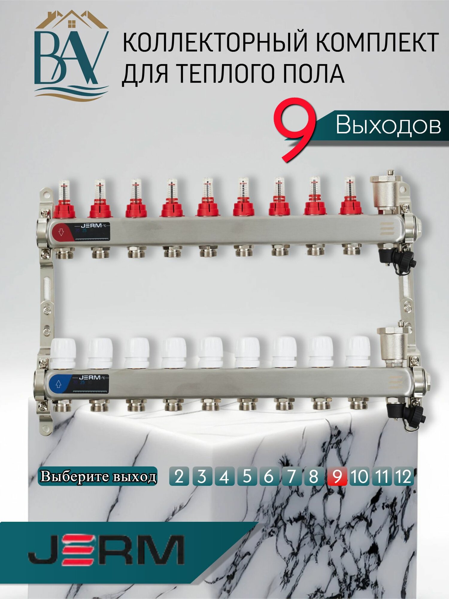 Коллектор для теплого пола JERM Коллектор с расходомерами на 9 контура. До 110кв/м.: сравнение цен, характеристики, фото, актуальное наличие и цены.