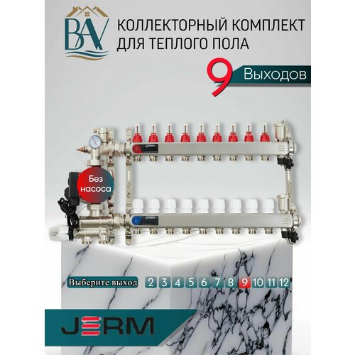 Коллектор для теплого пола JERM Коллектор с расходомерами на 9 контура. Смесительный узел от 20-60С. До 110кв/м.: сравнение цен, характеристики, фото, актуальное наличие и цены.
