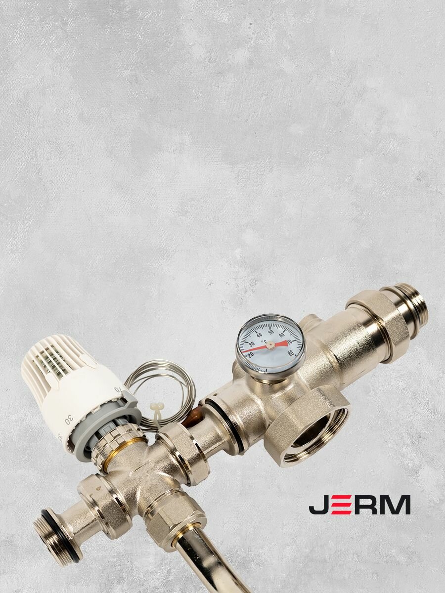 Купить Коллектор для теплого пола JERM Коллектор с расходомерами на 9 контуров. Смесительный узел JERM JR-007039. Циркуляционный насос 25/60. До 110кв/м. с доставкой по всей России.