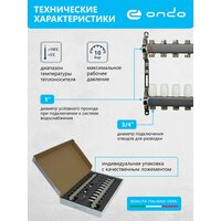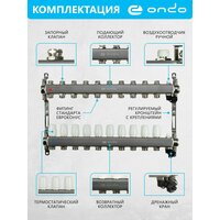 Купить Коллектор для теплого пола на 10 контуров + термостатические и запорные клапаны + НСУ ONDO с доставкой по всей России.