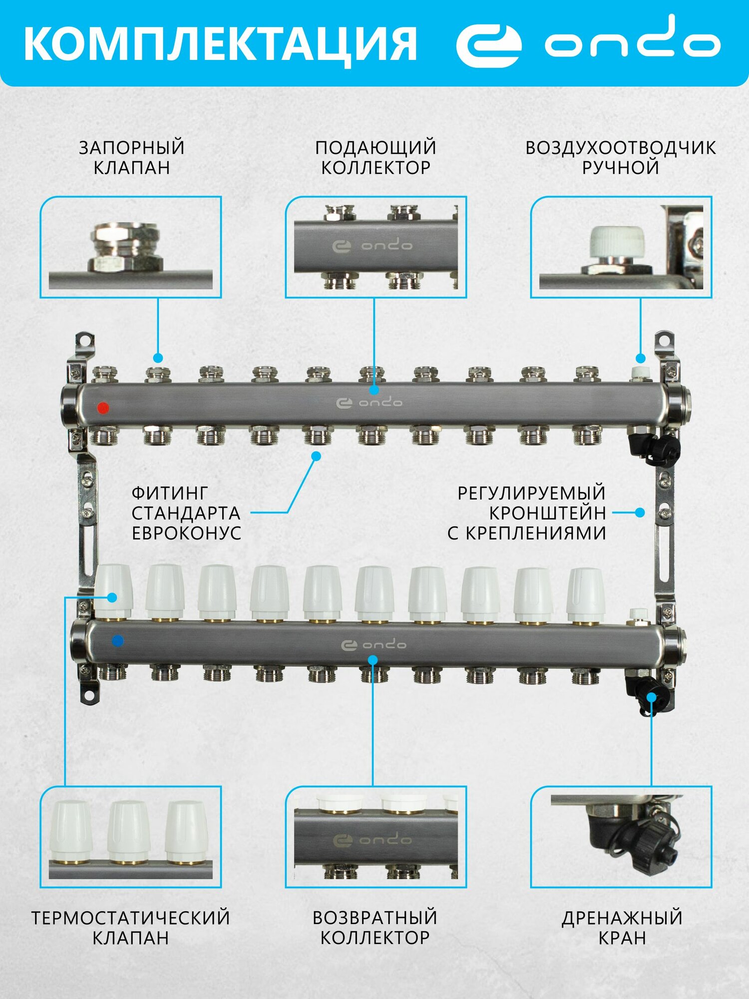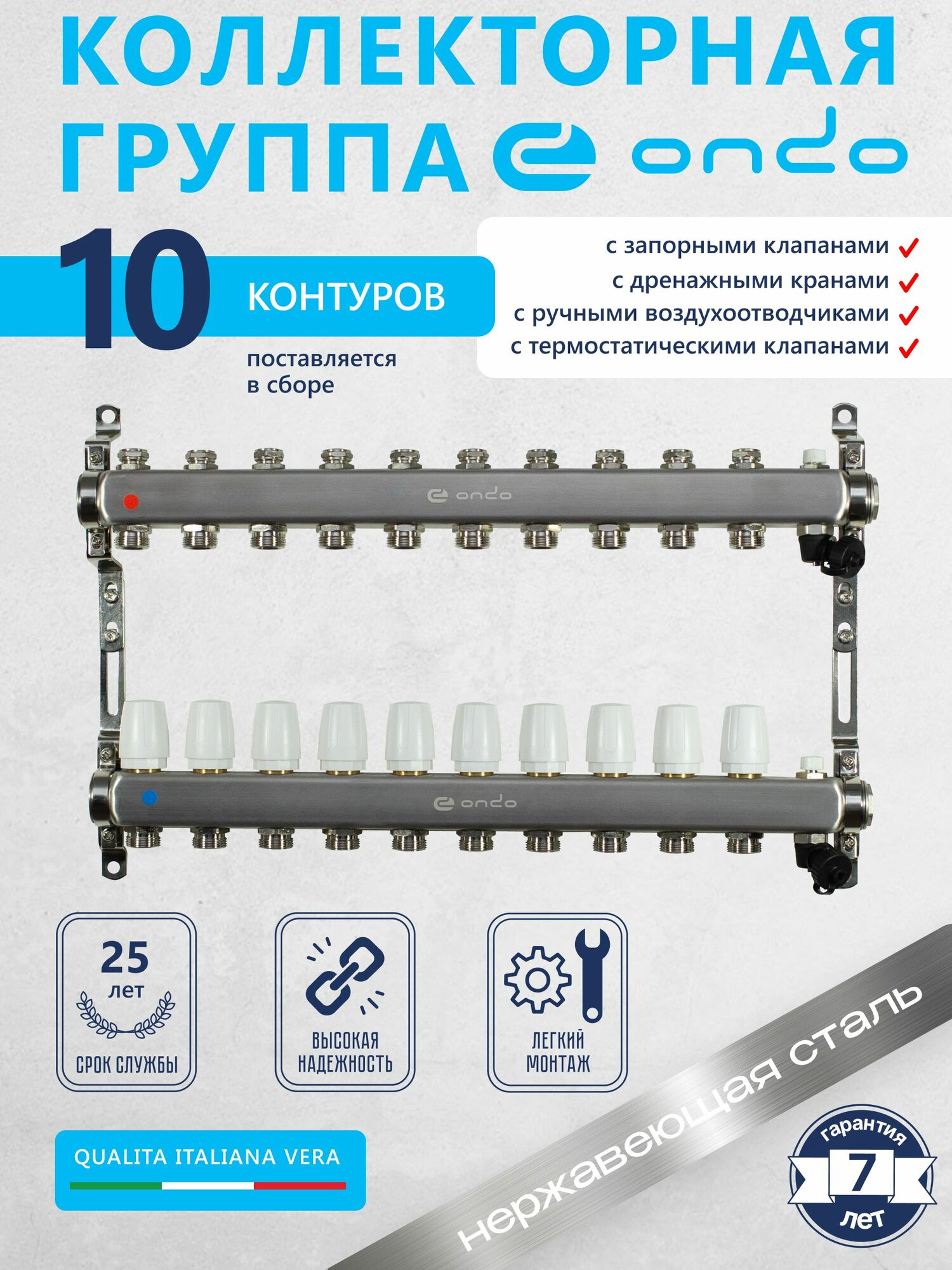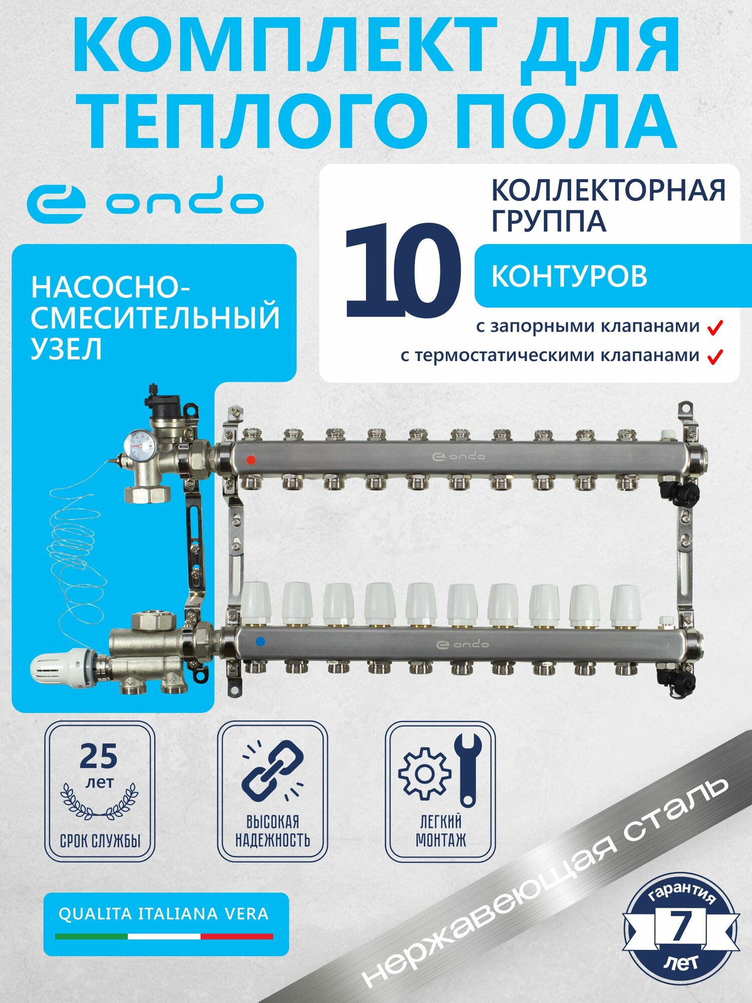 Коллектор для теплого пола на 10 контуров + термостатические и запорные клапаны + НСУ ONDO: сравнение цен, характеристики, фото, актуальное наличие и цены.