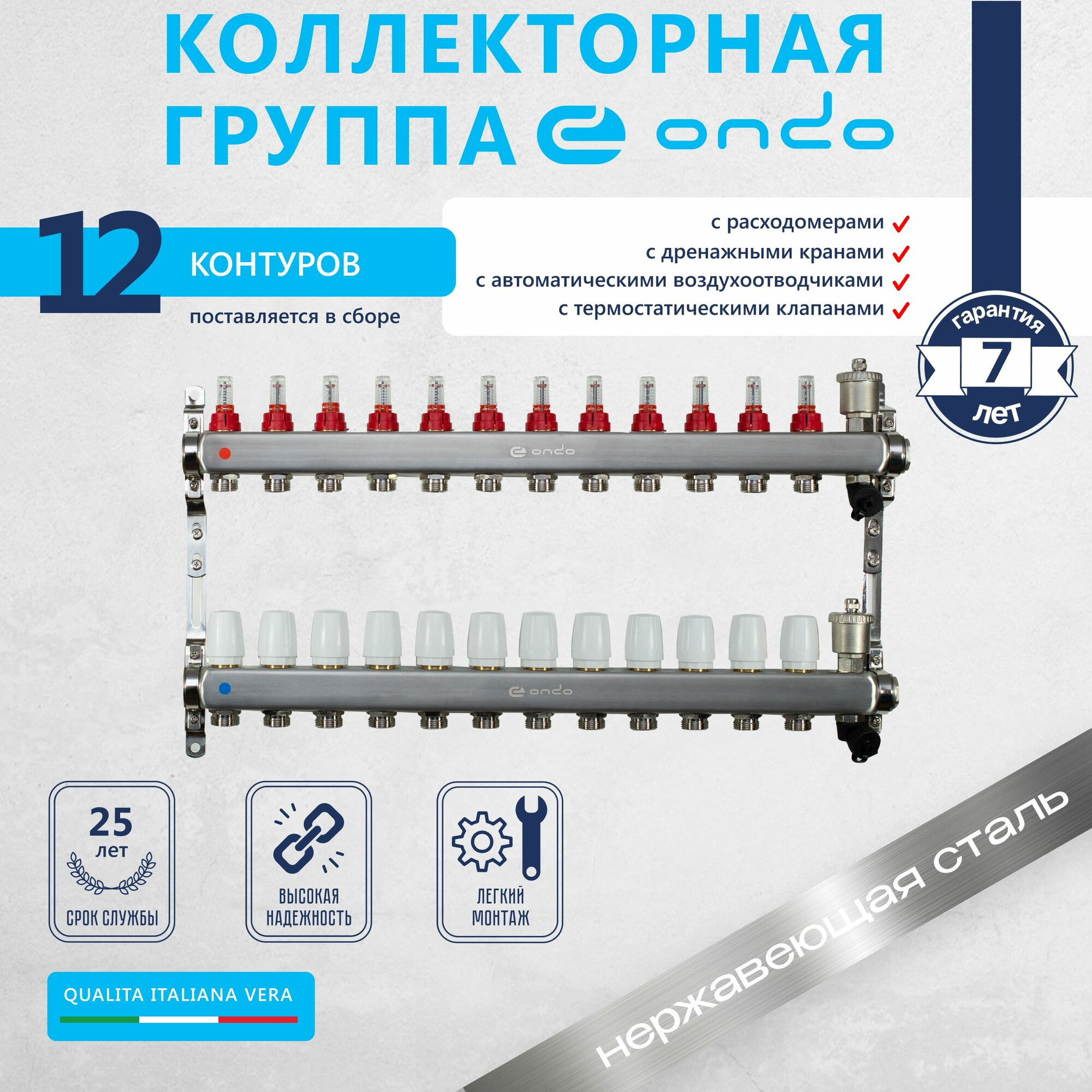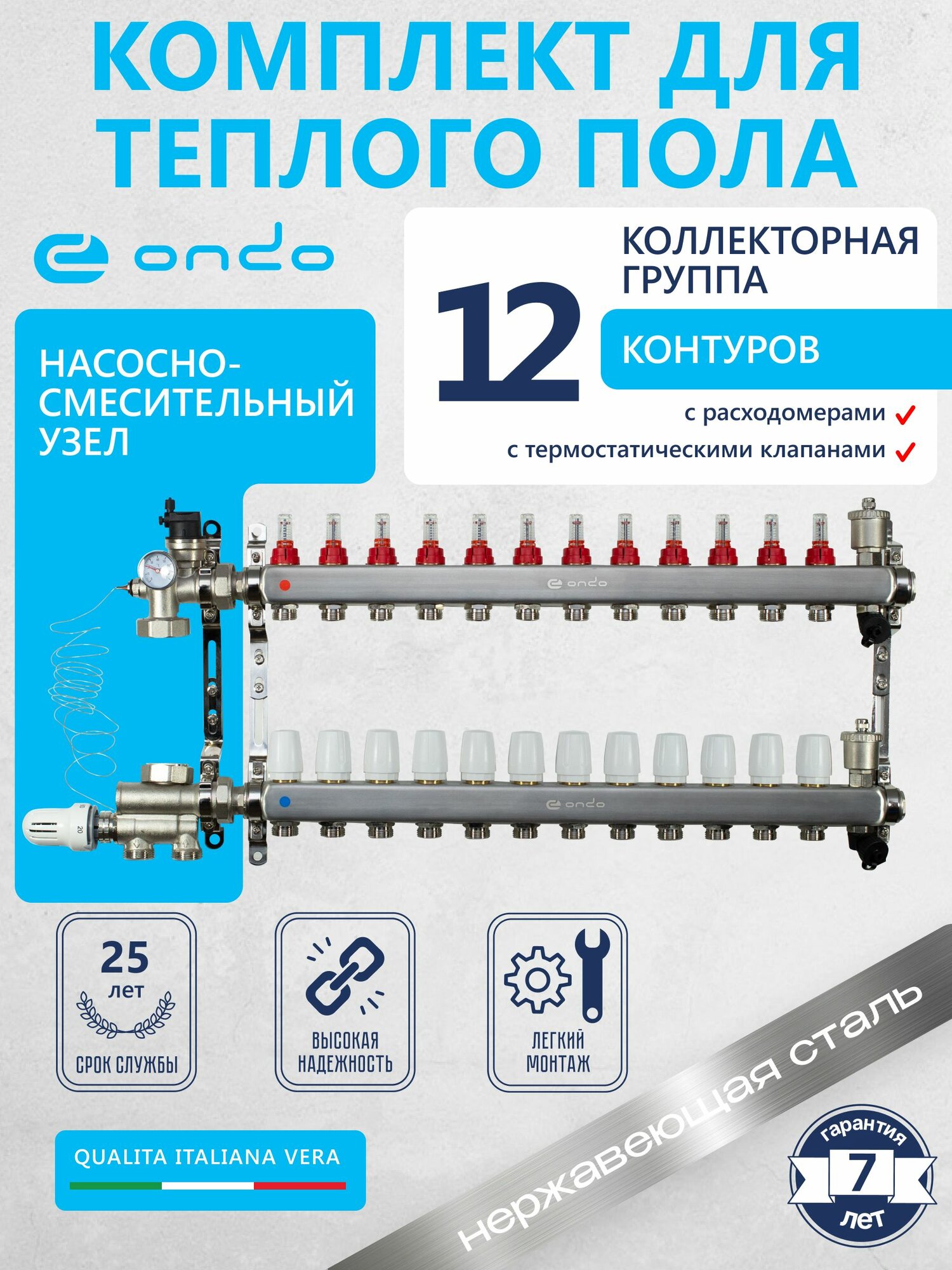 Коллектор для теплого пола на 12 контуров + термостатические и запорные клапаны + НСУ ONDO: сравнение цен, характеристики, фото, актуальное наличие и цены.