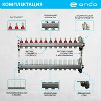 Купить Коллектор для теплого пола на 12 контуров + термостатические и запорные клапаны + НСУ ONDO с доставкой по всей России.