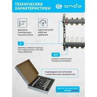 Купить Коллектор для теплого пола на 6 контуров + термостатические и запорные клапаны + НСУ ONDO с доставкой по всей России.