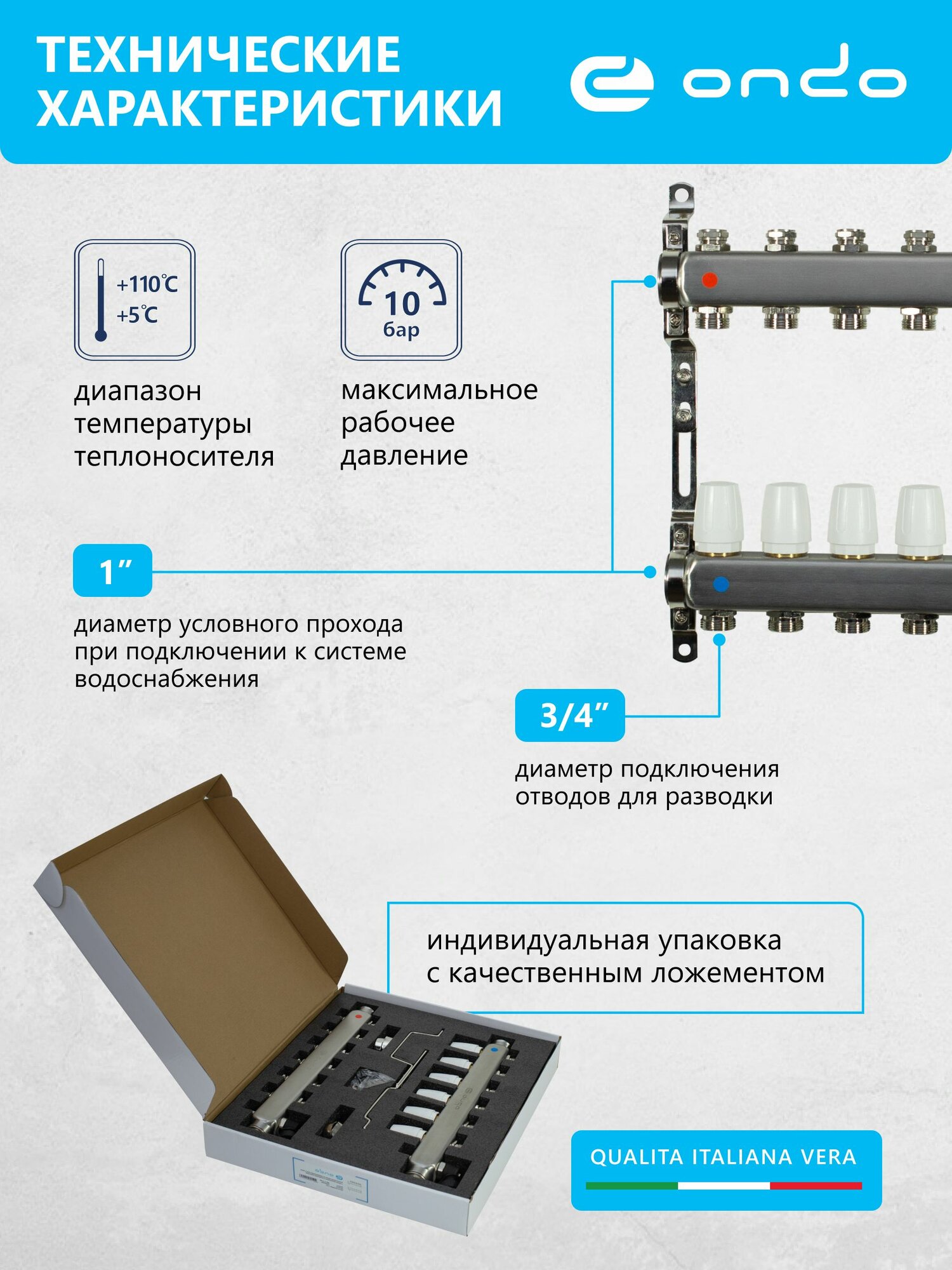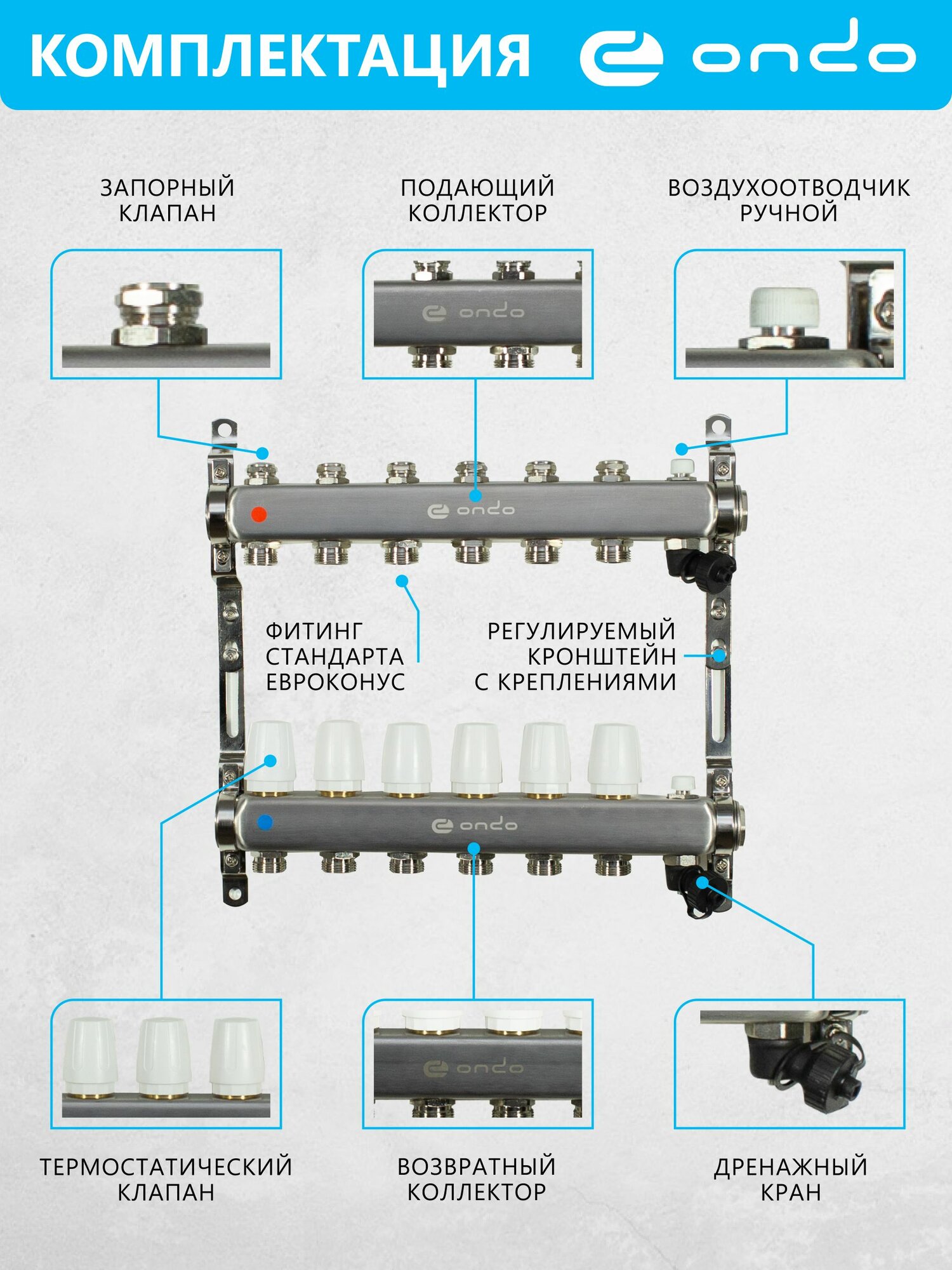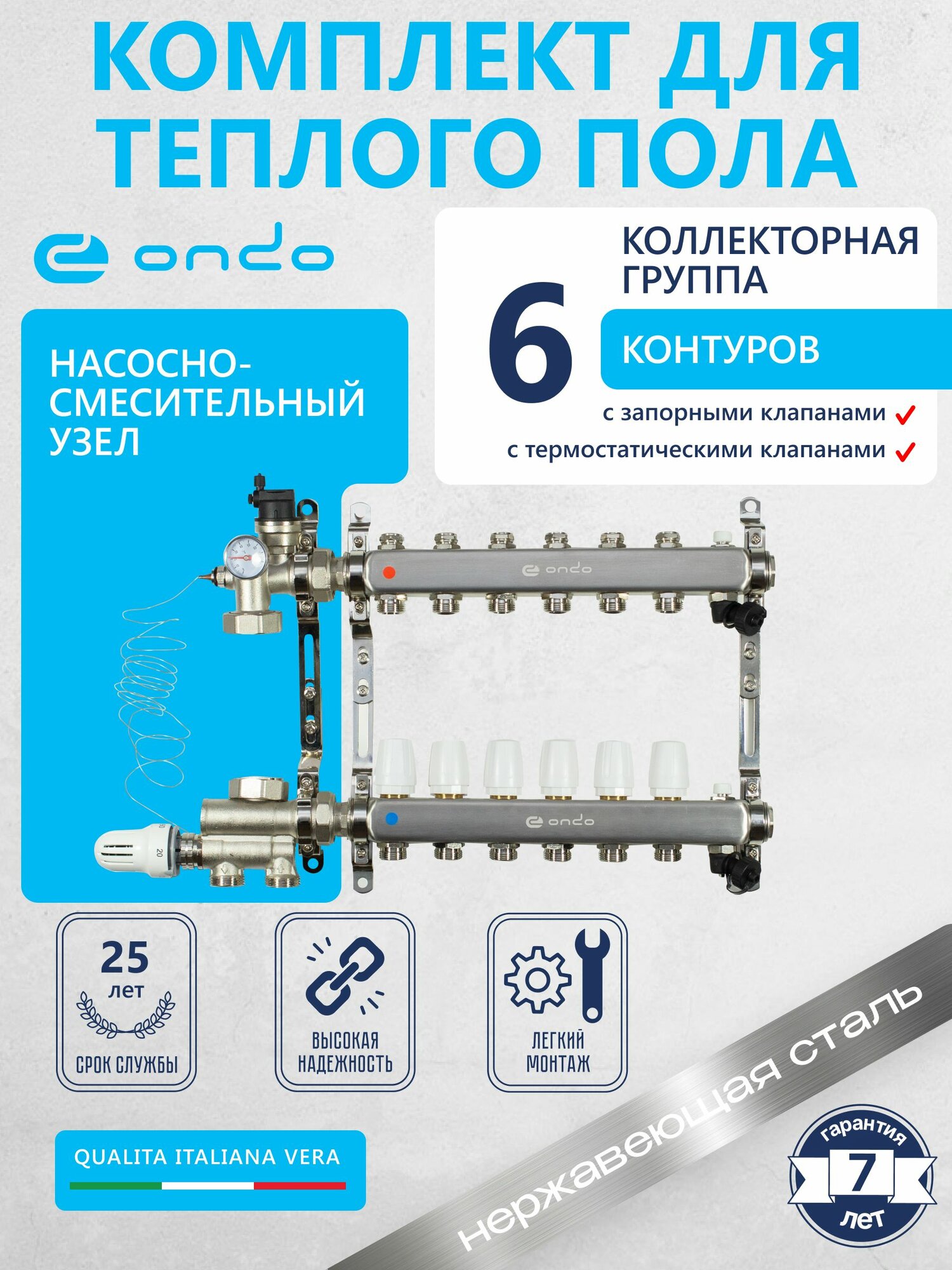 Коллектор для теплого пола на 6 контуров + термостатические и запорные клапаны + НСУ ONDO: сравнение цен, характеристики, фото, актуальное наличие и цены.