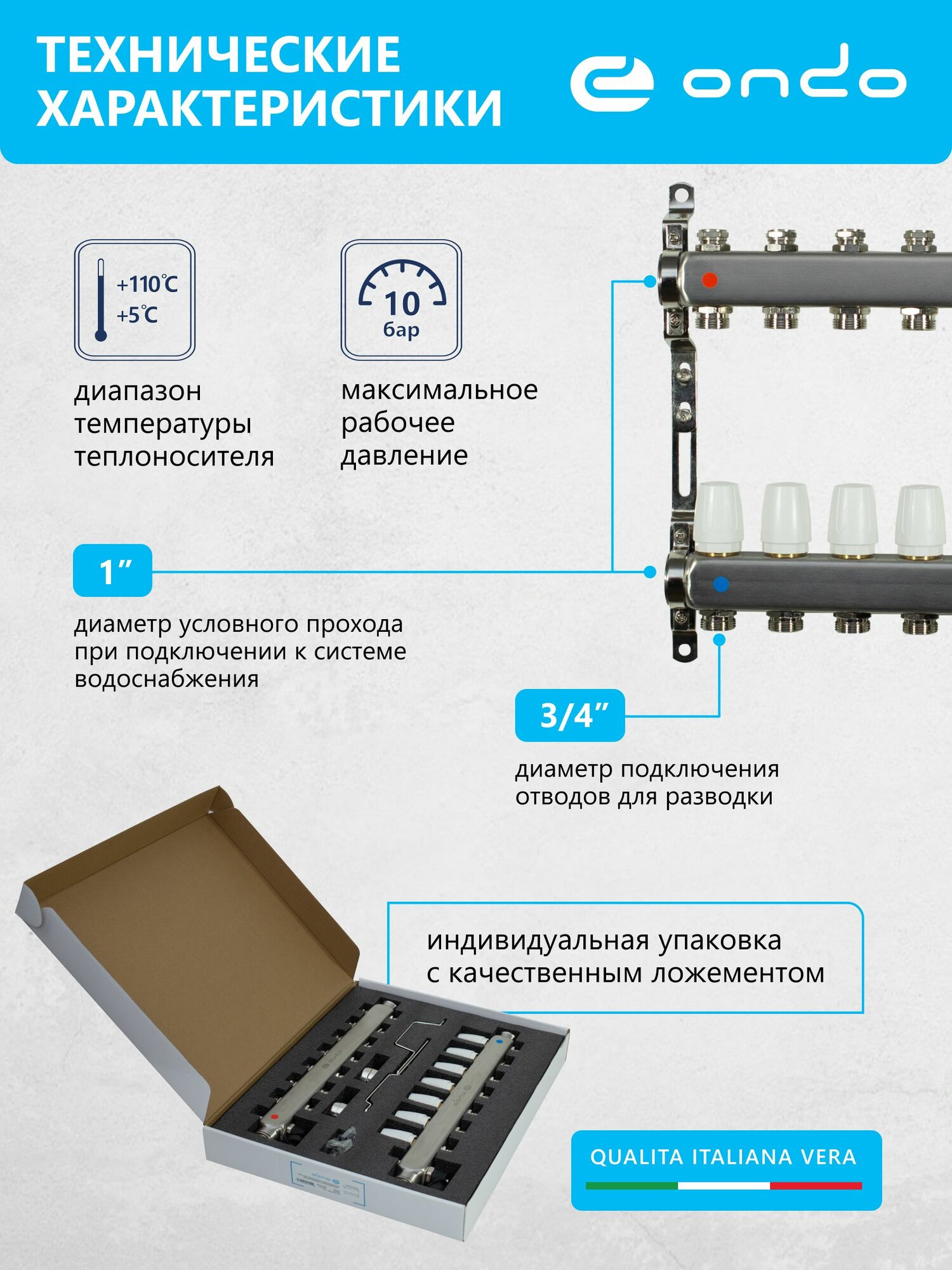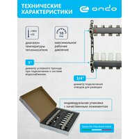 Купить Коллектор для теплого пола на 7 контуров + термостатические и запорные клапаны + НСУ ONDO с доставкой по всей России.