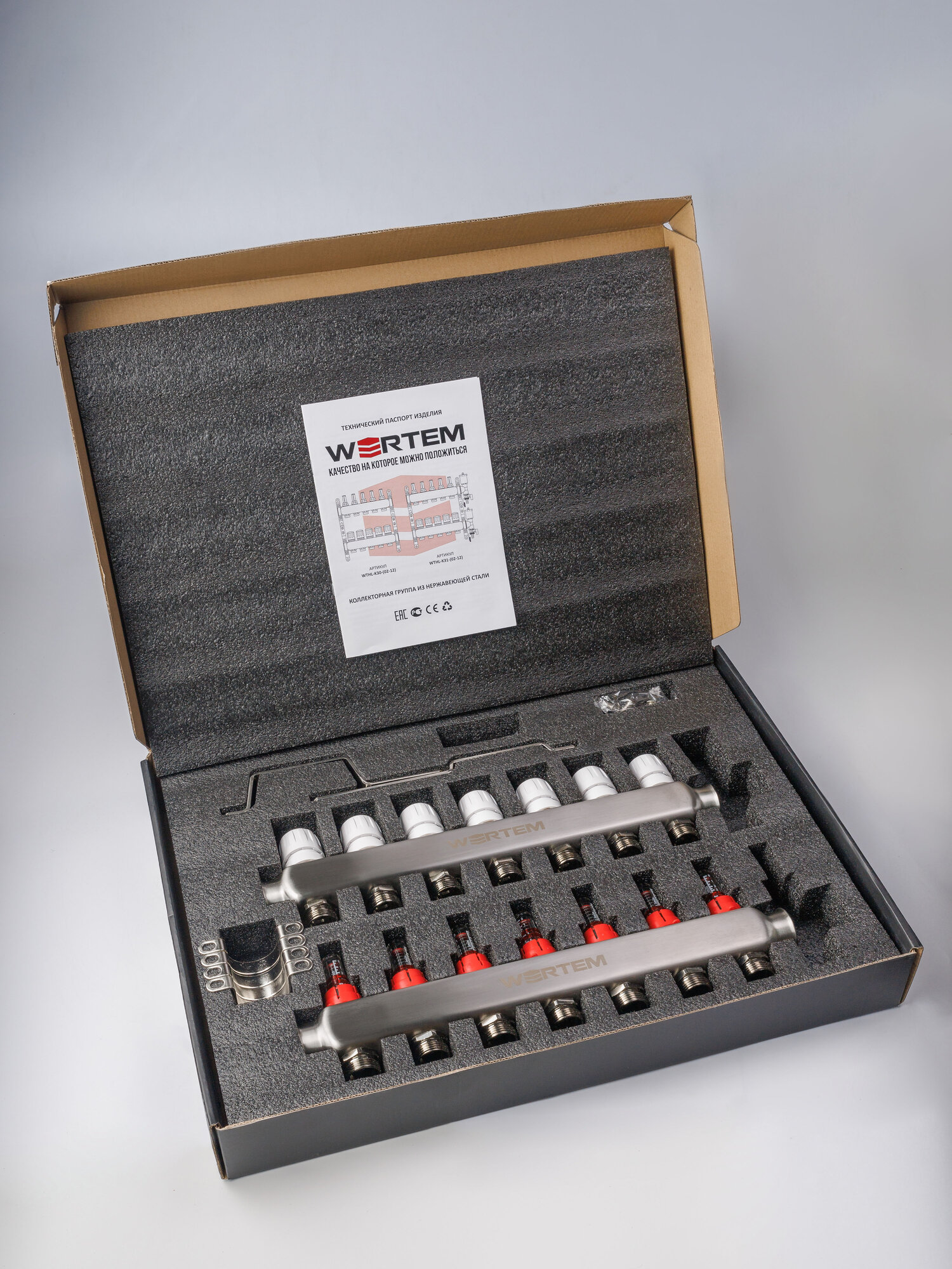 Купить Коллектор для теплого пола на 7 выходов с расходомерами WERTEM с доставкой по всей России.