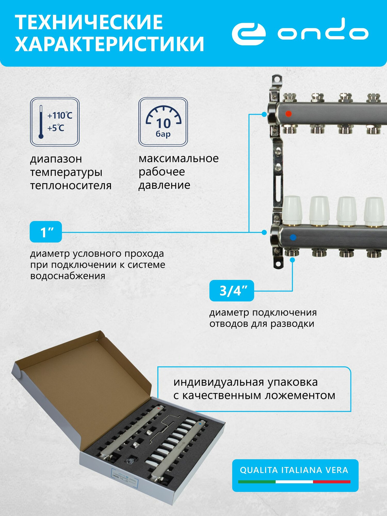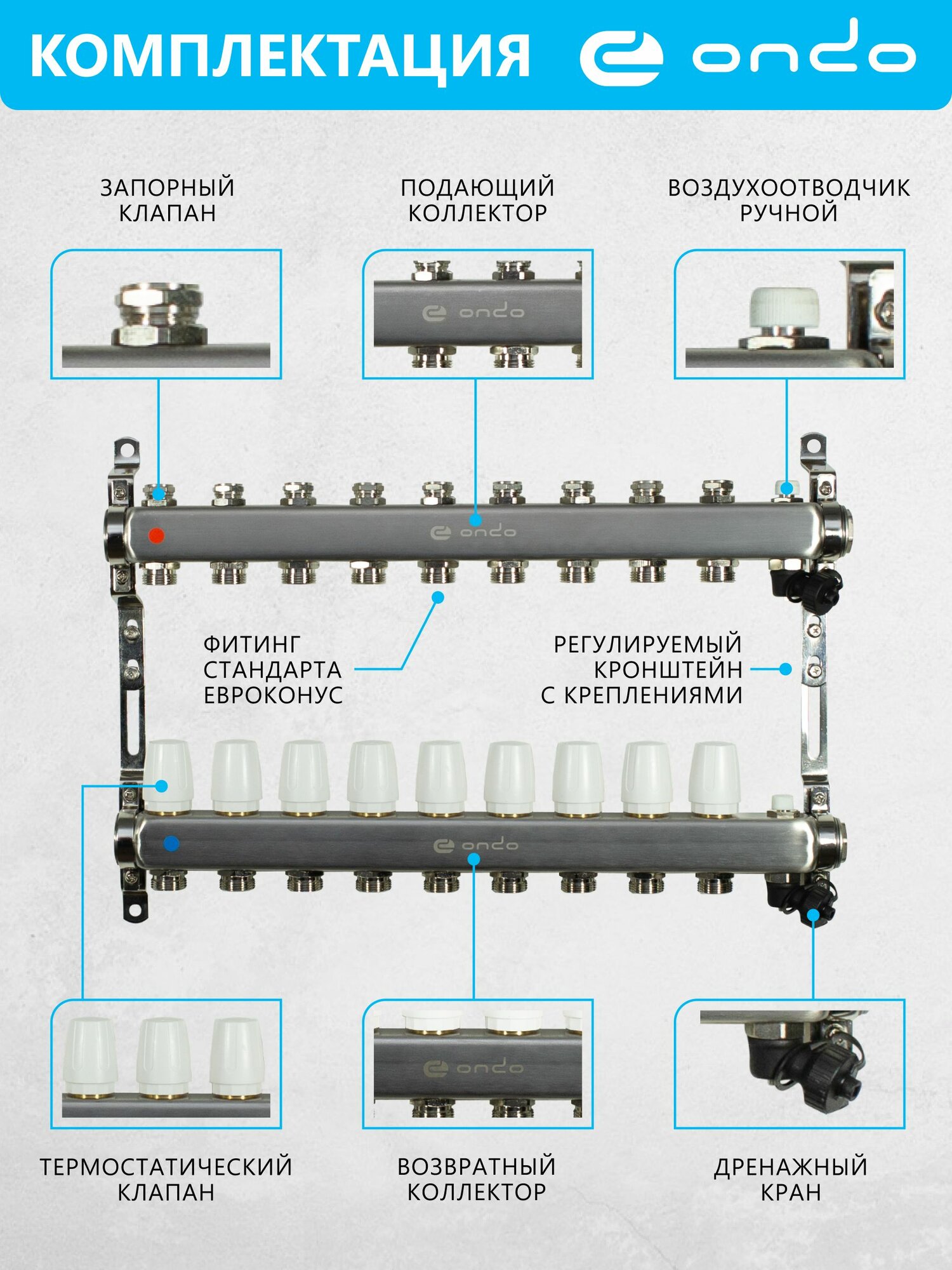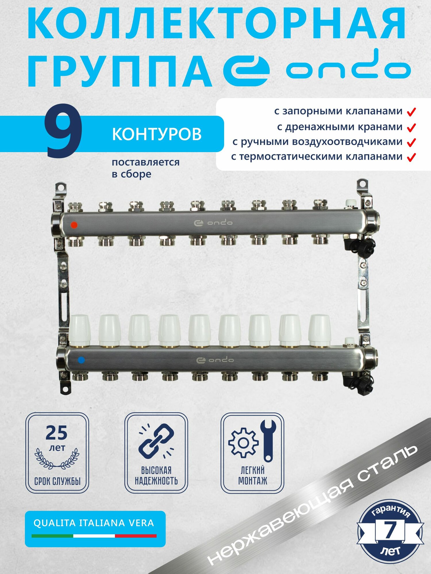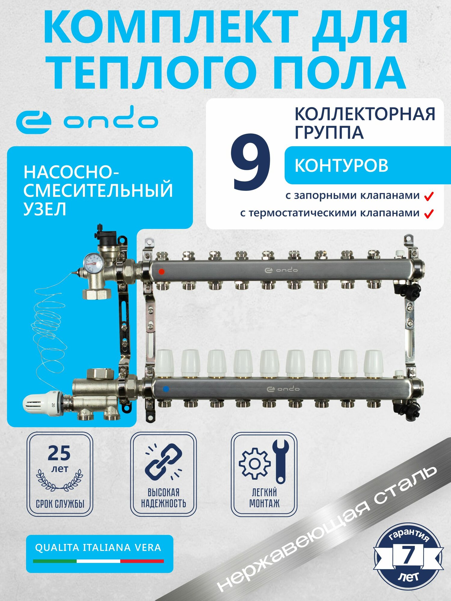 Коллектор для теплого пола на 9 контуров + термостатические и запорные клапаны + НСУ ONDO: сравнение цен, характеристики, фото, актуальное наличие и цены.