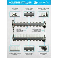 Купить Коллектор для теплого пола на 9 контуров + термостатические и запорные клапаны + НСУ ONDO с доставкой по всей России.