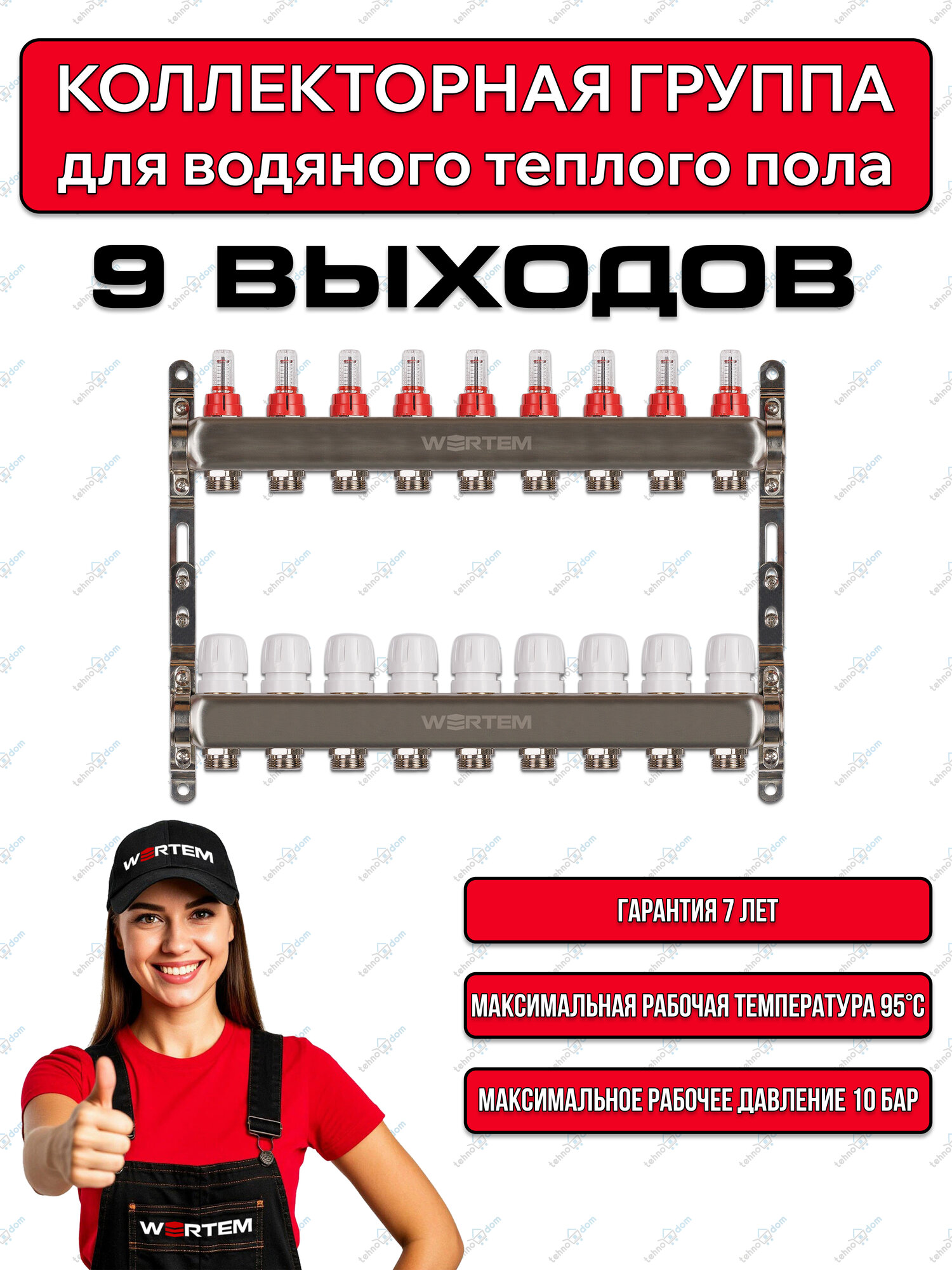 Купить Коллектор для теплого пола на 9 выходов с расходомерами WERTEM с доставкой по всей России. Коллектор для теплого пола на 9 выходов с расходомерами WERTEM: сравнение цен, характеристики, фото, актуальное наличие и цены.