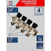 Купить Коллектор для труб СТМ 4 выхода наружная резьба 3/4″х1/2″, вентиль C4MV3412N с доставкой по всей России.
