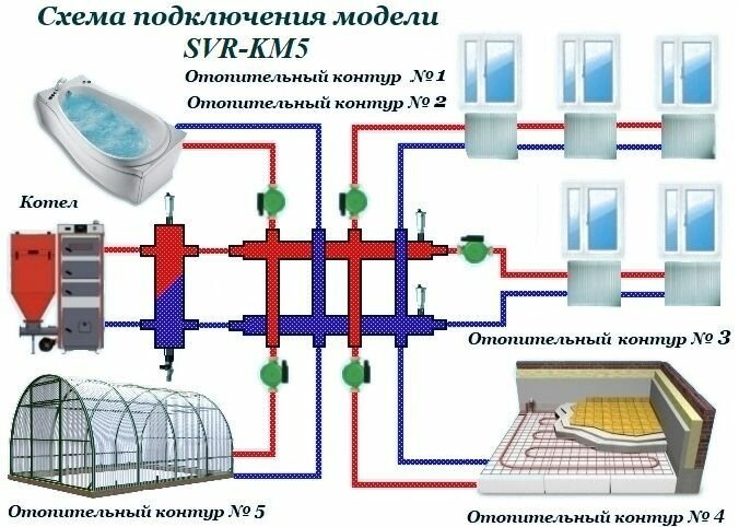 Гидравлический коллектор Север-KM5 оснащен патрубками для воздухоотводчика (1/2" ВР) и шламоудаления (1/2" ВР), а также патрубками для термометров (1/2" ВР). Это позволяет контролировать работу системы и своевременно удалять воздух и шлаки.