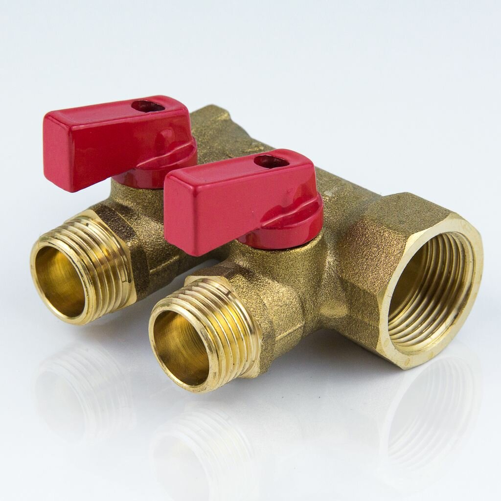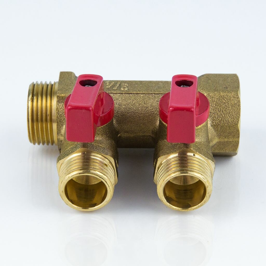 Купить Коллектор латунь 3/4″ ВР/НР на 2 вых 1/2″ НР м/о 35мм с шаровыми кранами, красные ручки 9026 Aquasfera 9026-01 с доставкой по всей России.