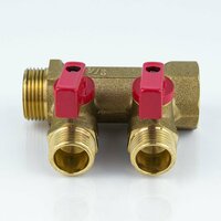 Коллектор латунь 3/4″ ВР/НР на 2 вых 1/2″ НР м/о 35мм с шаровыми кранами, красные ручки 9026 Aquasfera 9026-01: сравнение цен, характеристики, фото, актуальное наличие и цены.