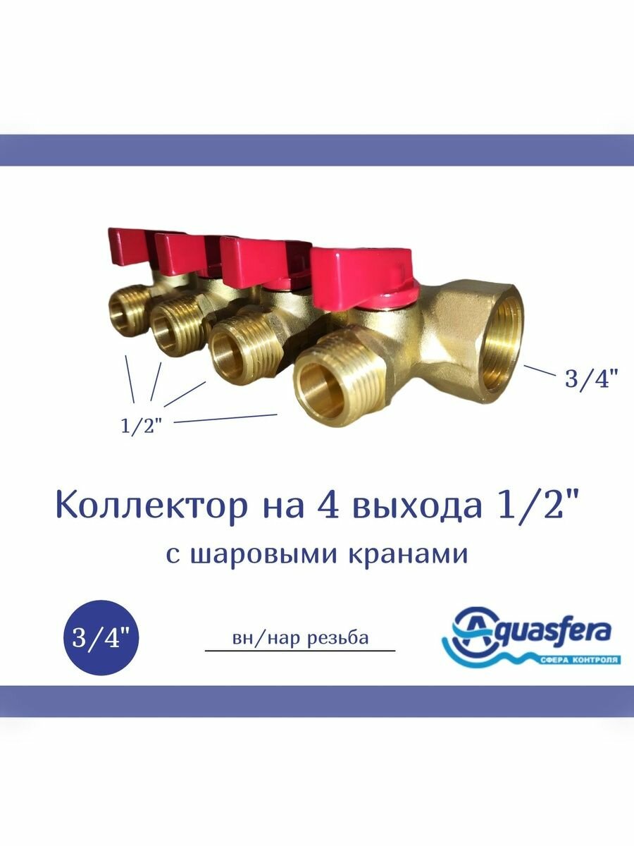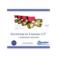 Коллектор латунь 3/4″ ВР/НР на 4 вых 1/2″ НР м/о 35мм с шаровыми кранами, красные ручки 9026 Aquasfera 9026-03: сравнение цен, характеристики, фото, актуальное наличие и цены.