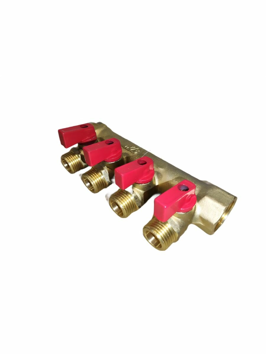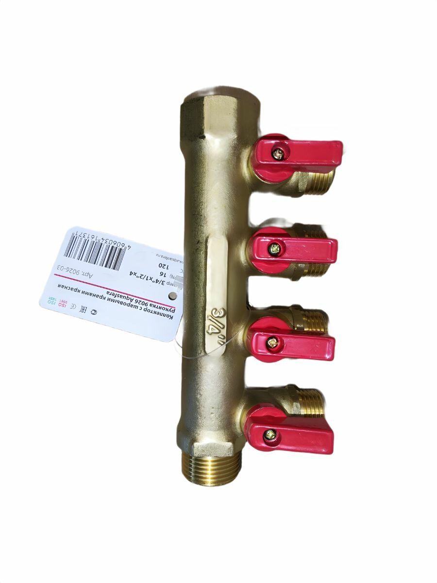 Купить Коллектор латунь 3/4″ ВР/НР на 4 вых 1/2″ НР м/о 35мм с шаровыми кранами, красные ручки 9026 Aquasfera 9026-03 с доставкой по всей России.
