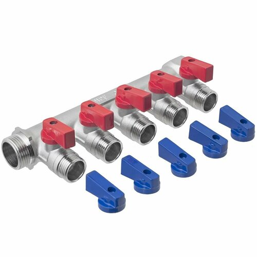 Коллектор с отсекающими кранами используется в системах хол/гор водоснабжения, водяного радиаторного или напольного отопления для распределения и регулирования потоков жидкостей в системе, т. е. происходит равномерное распределение воды от трубопровода (стояка) к различным сантехническим приборам: унитазу, смесителям, душевой кабине, стиральной машине и т. д. Коллектора имеют различное количество выходов (отводов) в зависимости от своей конфигурации, на каждом из которых установлен отсекающий кран, позволяющий открывать и закрывать водяной поток на каждой отдельной ветке, но не имеет возможности регулировать расход водяного потока на каждом отдельном отводе. Коллектор имеет выходы под евроконус, что позволяет использовать его с м/п трубами. Евроконус покупается отдельно. Коллектор подходит для использования в системах питьевого водоснабжения благодаря минимальному содержанию свинца в сплаве, а также в других средах, неагрессивных к материалам производителя. Для защиты от коррозии и придания изделию эстетичного вида как на наружную, так и на внутреннюю поверхности коллектора нанесено гальваническое никелевое покрытие, Использование коллектора в водопроводных системах позволяет уйти от излишней регулирующей и запорной арматуры, а также различных уплотнений (нити для герметизации, льняной нити и т. д.). Это значительно упрощает как монтирование водопроводной системы, так и ее проектирование и последующую настройку и налаживание оборудования. Благодаря коллектору в водопроводной системе обеспечивается одинаковое давление для потребителей. Присоединительный размер: 3/4" внутренняя резьба, Ответная часть присоединительного места: 3/4" наружная резьба, Присоединительный размер отводов: 1/2" наружная резьба, Количество отводов: 5 шт, Тип запирающего механизма на отводах: отсекающий кран, Метод изготовления: горячая штамповка, Материал корпуса: латунь 57, Внешнее покрытие: никелевое гальваническое антикоррозионное, Рабочая температура: от -10°C до +100°C, Рабочее давление: до 6 Bar (0,6 МПа), Условная пропускная способность 2,7 м3/час, Расстояние между осями выходов 36 мм, Рабочая среда: вода, пар, сжатый воздух и другие среды не агрессивные к материалам изделия, Срок эксплуатации: 10 лет, Гарантия: 5 лет