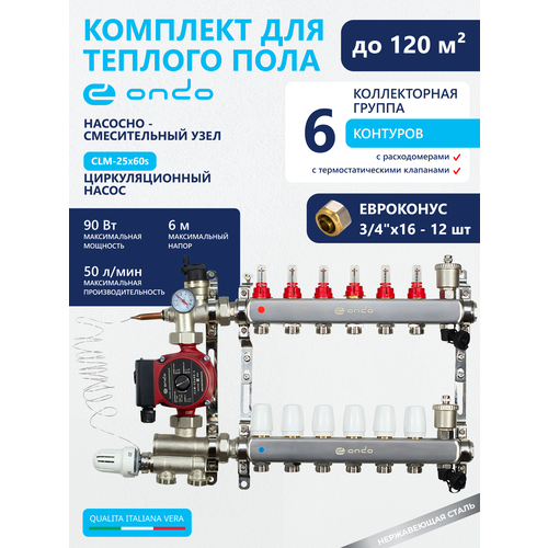 Коллектор для теплого пола 6 контуров, смесительный узел, с насосом , с расходомерам: сравнение цен, характеристики, фото, актуальное наличие и цены.