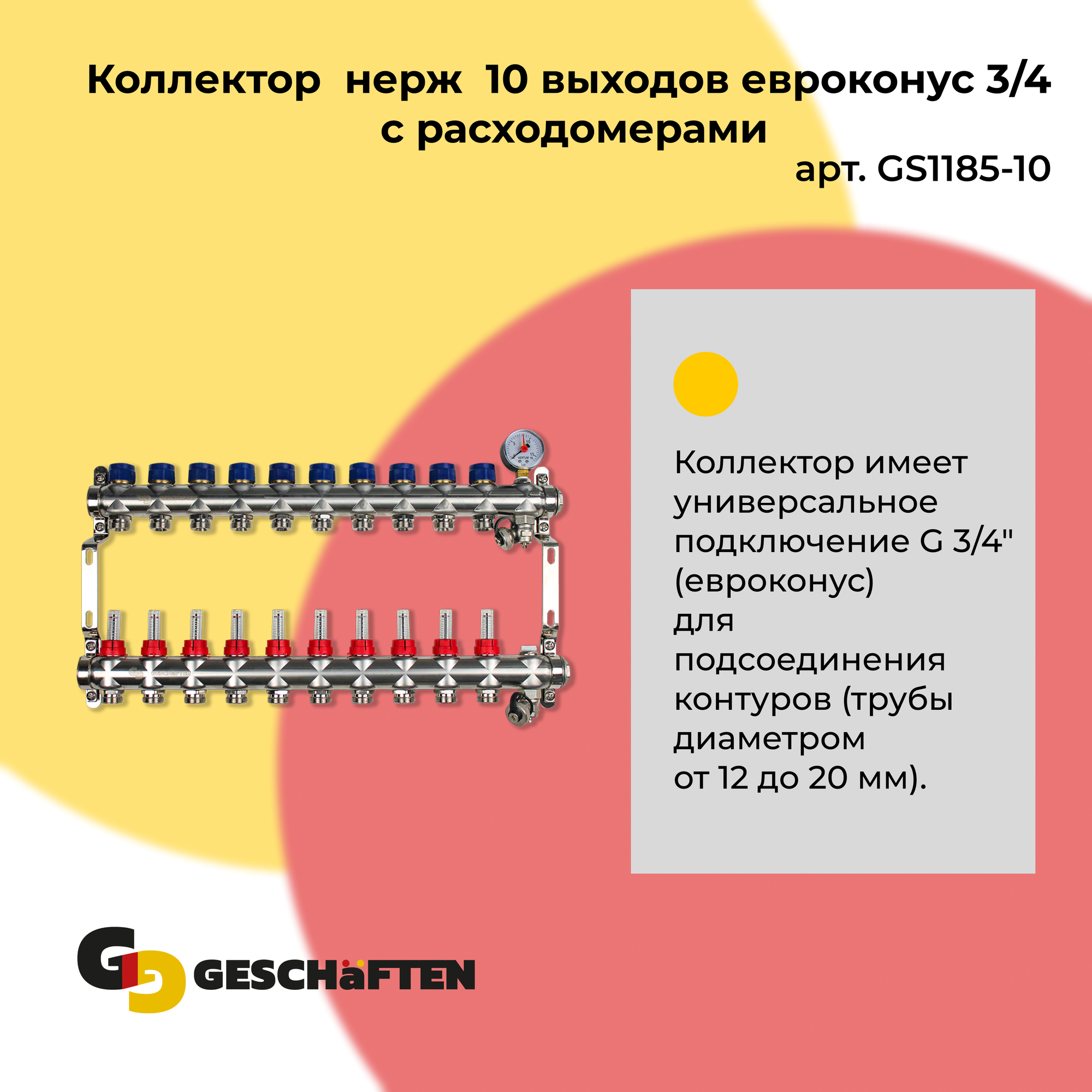 Коллектор с расходомерами для теплого пола из нержавеющей стали на 10 выходов евроконус 3/4 Geschaften: сравнение цен, характеристики, фото, актуальное наличие и цены.
