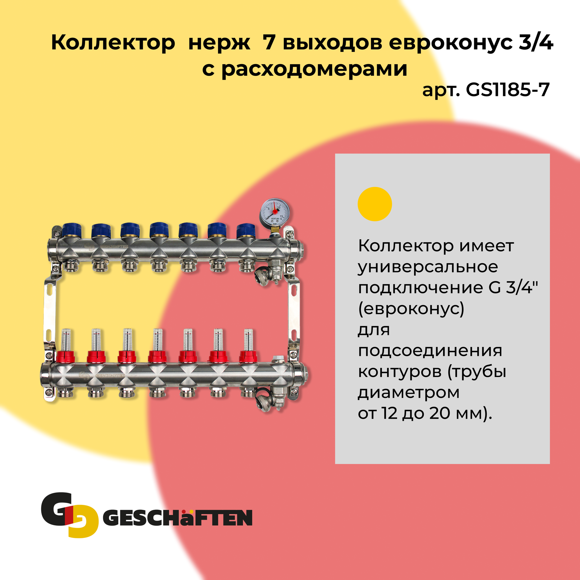 Коллектор с расходомерами для теплого пола из нержавеющей стали на 7 выходов евроконус 3/4 Geschaften: сравнение цен, характеристики, фото, актуальное наличие и цены.