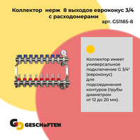 Коллектор с расходомерами для теплого пола из нержавеющей стали на 8 выходов евроконус 3/4 Geschaften: сравнение цен, характеристики, фото, актуальное наличие и цены.