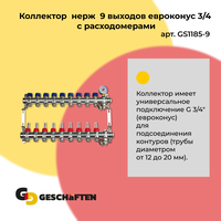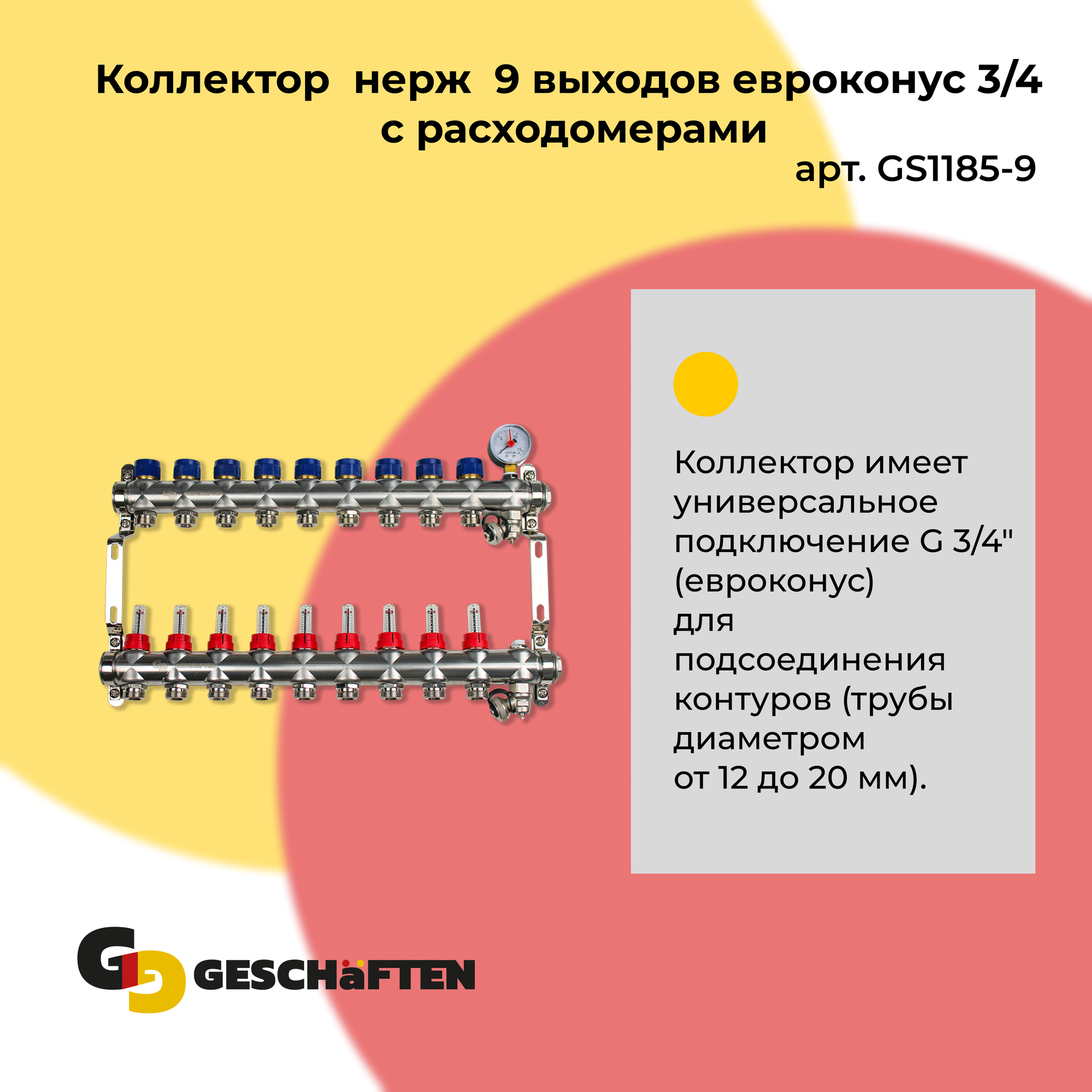 Коллектор с расходомерами для теплого пола из нержавеющей стали на 9 выходов евроконус 3/4 Geschaften: сравнение цен, характеристики, фото, актуальное наличие и цены.