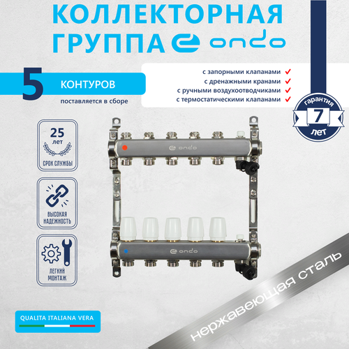 Коллектор для теплого пола и для радиаторов на 5 выходов + термостатические и запорные клапаны ONDO: сравнение цен, характеристики, фото, актуальное наличие и цены.