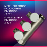 Коллектор отопления с запорными кранами, PINTOSSI+C арт. 460-14, НР/ВР, 3/4″ х 3в. х 1/2″, шаг 38 мм, Euroconus: сравнение цен, характеристики, фото, актуальное наличие и цены.